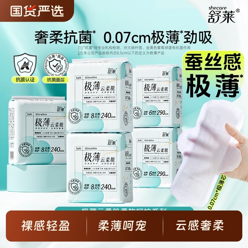 舒莱极薄云柔肌卫生巾日夜组合装超薄透气无感姨妈巾整箱正品日用