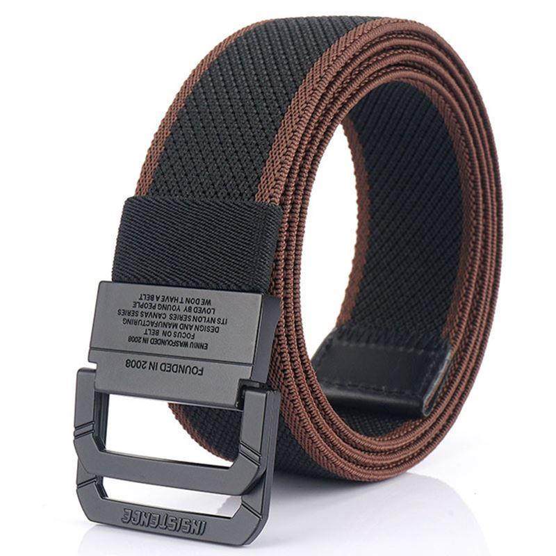 日本2025新款男士松紧弹力帆布皮带黑色平滑双环扣裤带年轻人腰带