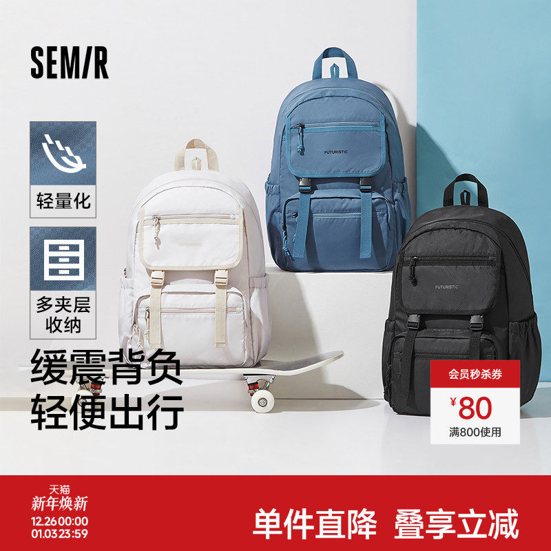 森马双肩包男2024新款轻便大容量电脑包书包肌理感情侣背包学院风