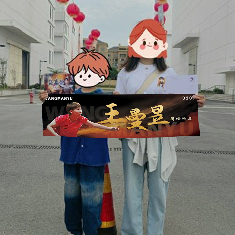 王曼昱应援手幅乒乓球赛事鳗鱼小鱼球迷应援助威手拉横幅旗帜定制
