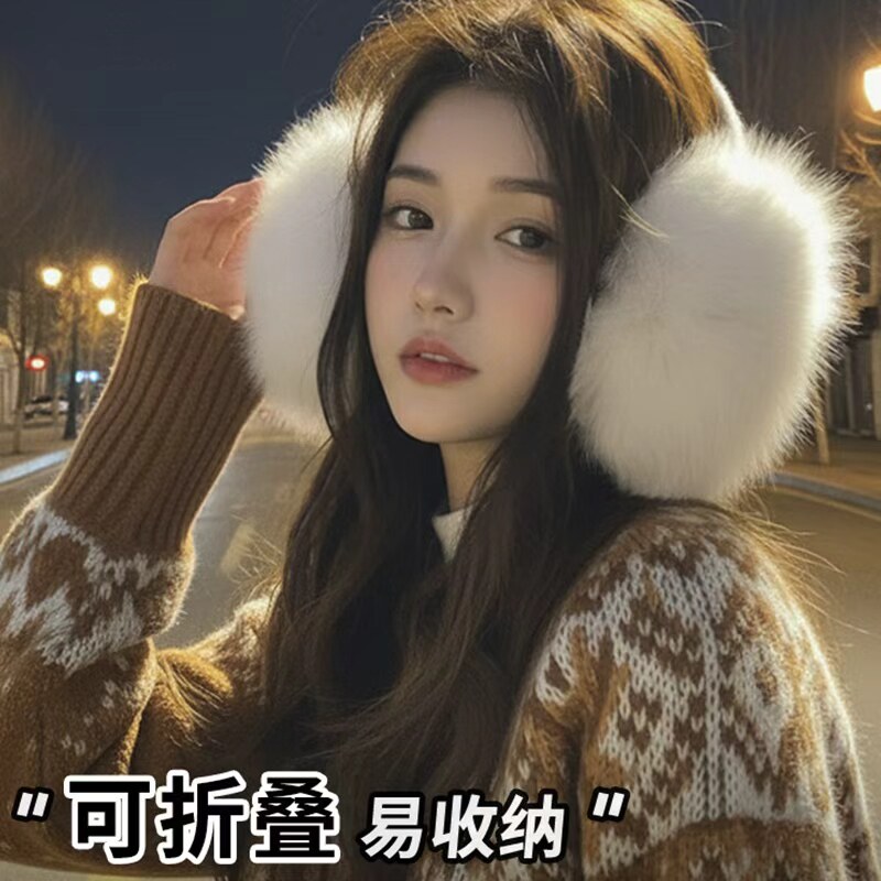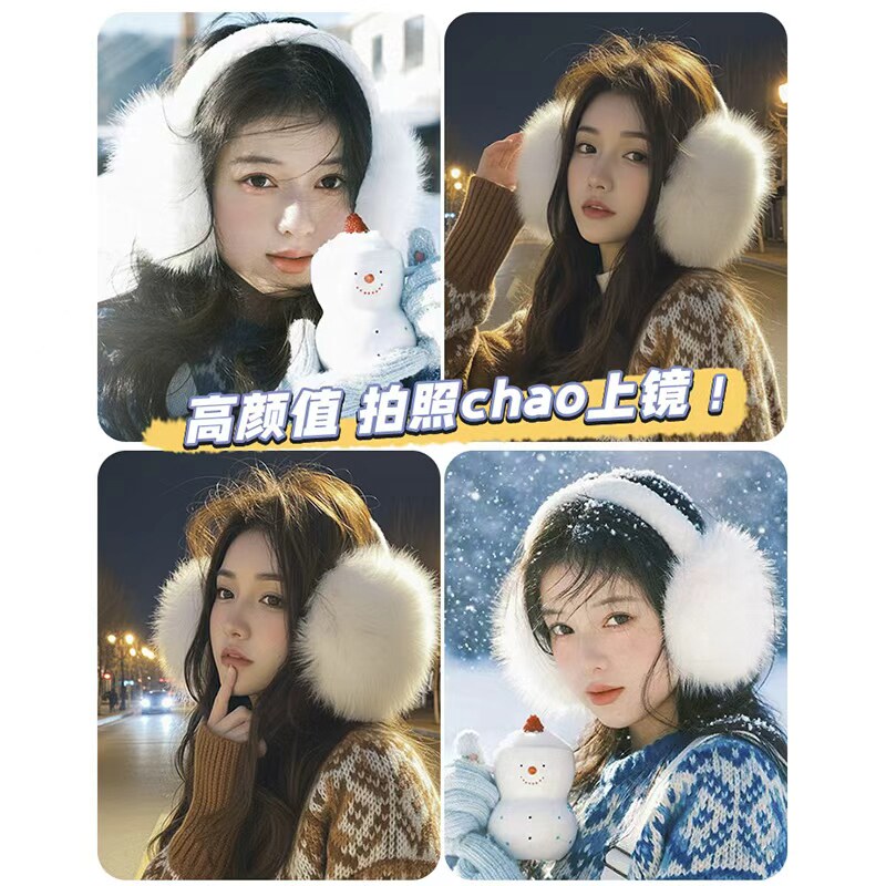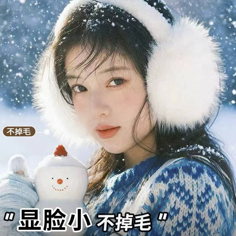 冬季氛围感白色毛绒绒耳罩保暖防寒可爱护耳耳捂女生户外骑行耳包