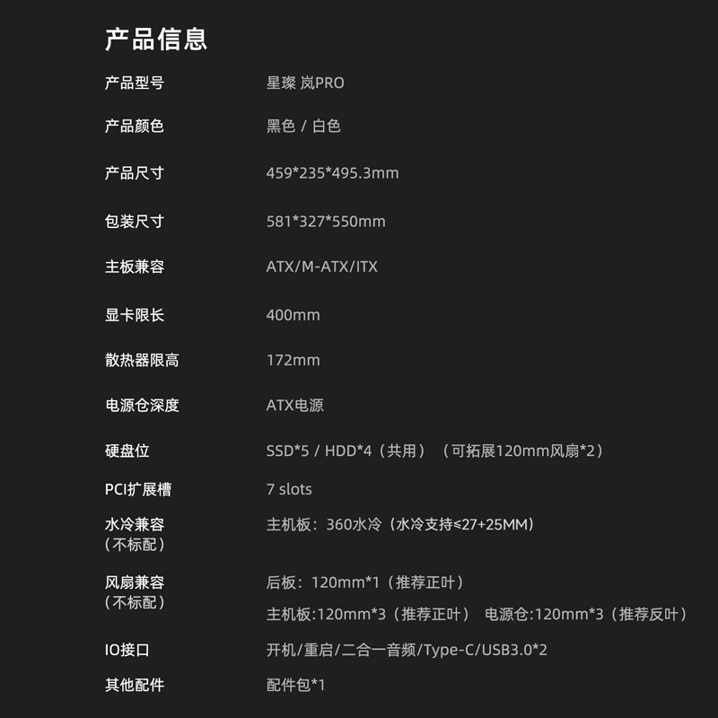 爱国者星璨岚PRO海景房机箱台式机ATX无立柱360水冷DIY电脑主机箱