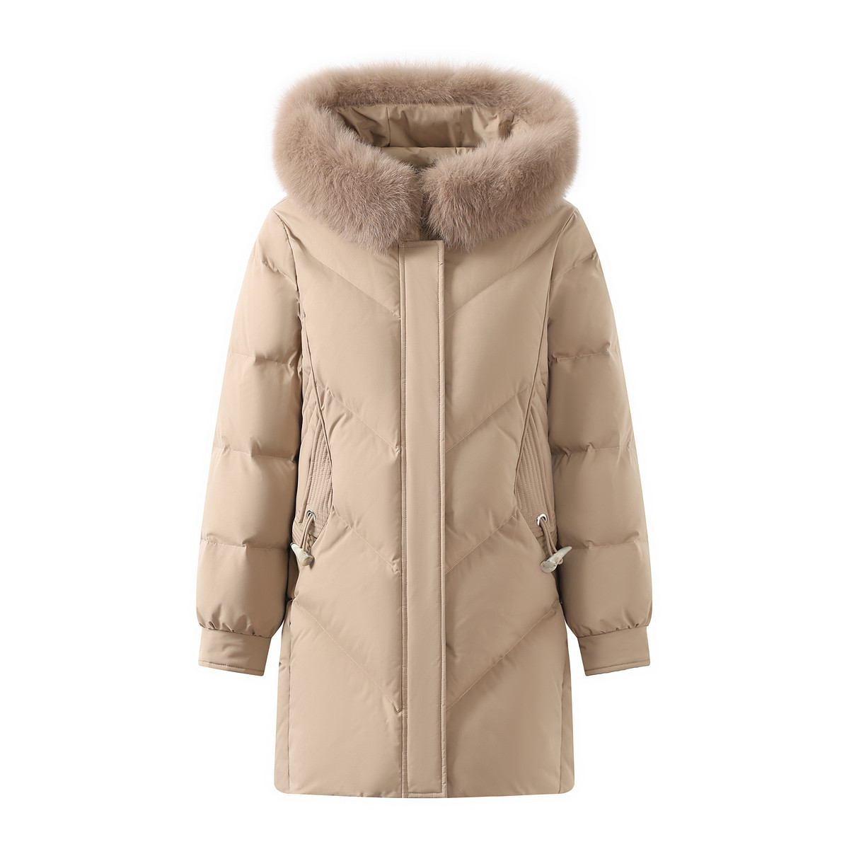 雪中飞2026春新款女士妈妈款中长款连帽羽绒服大毛领纯色洋气保暖