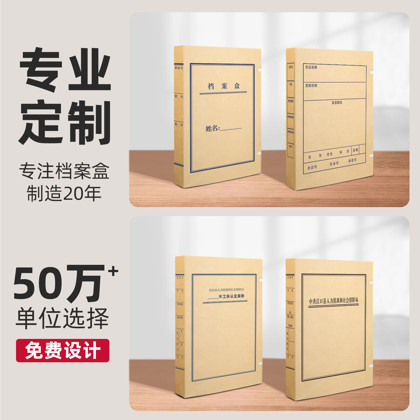 30个牛皮纸档案盒政府人社局专用办公室无酸纸档案袋人事文件资料盒加厚A4文书科技收纳合同大容量定制logo