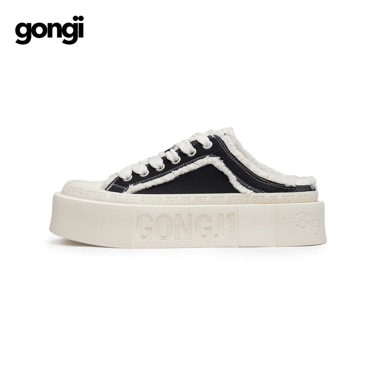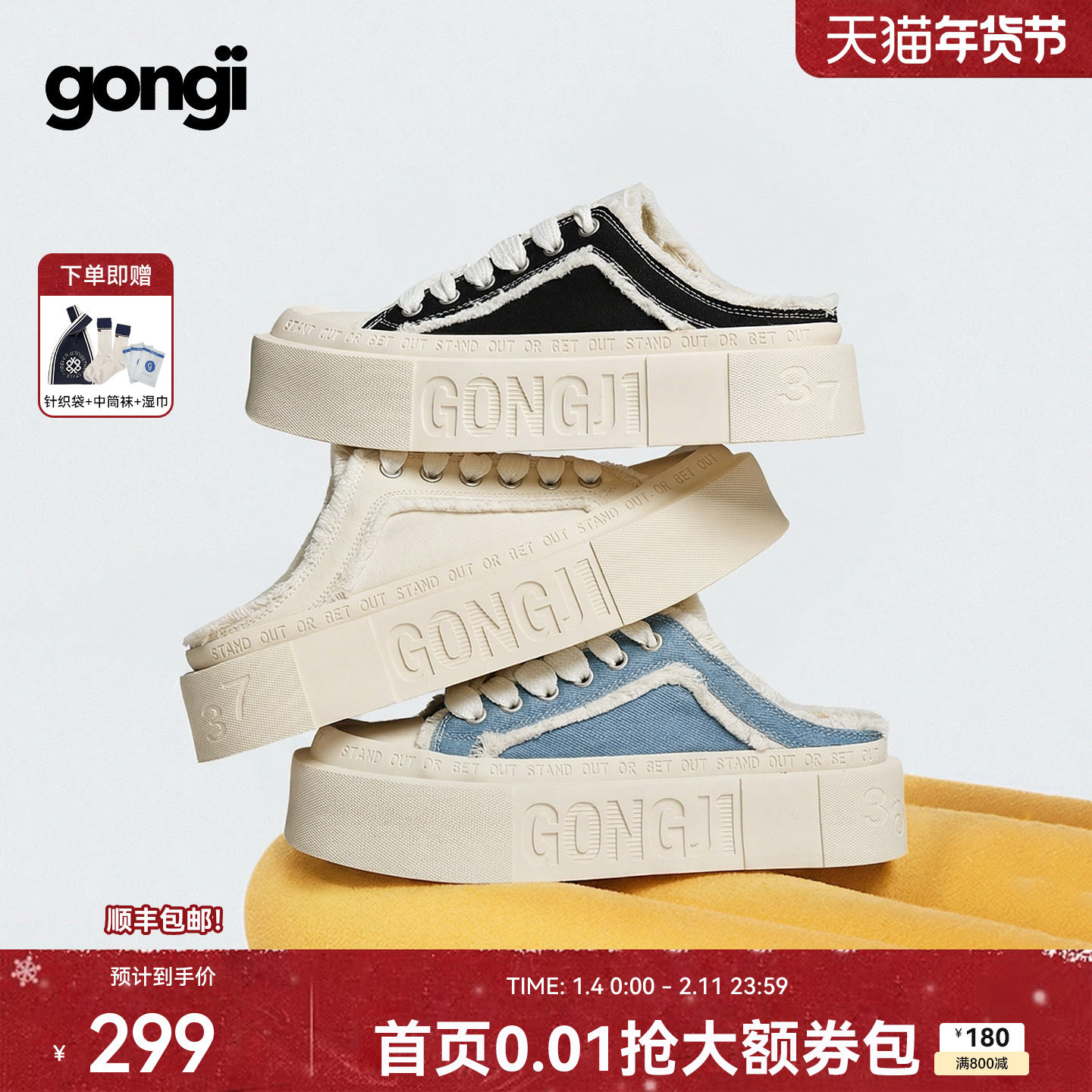 孟子义同款|GONGJI包头半拖帆布鞋女外穿厚底一脚蹬无后跟懒人鞋
