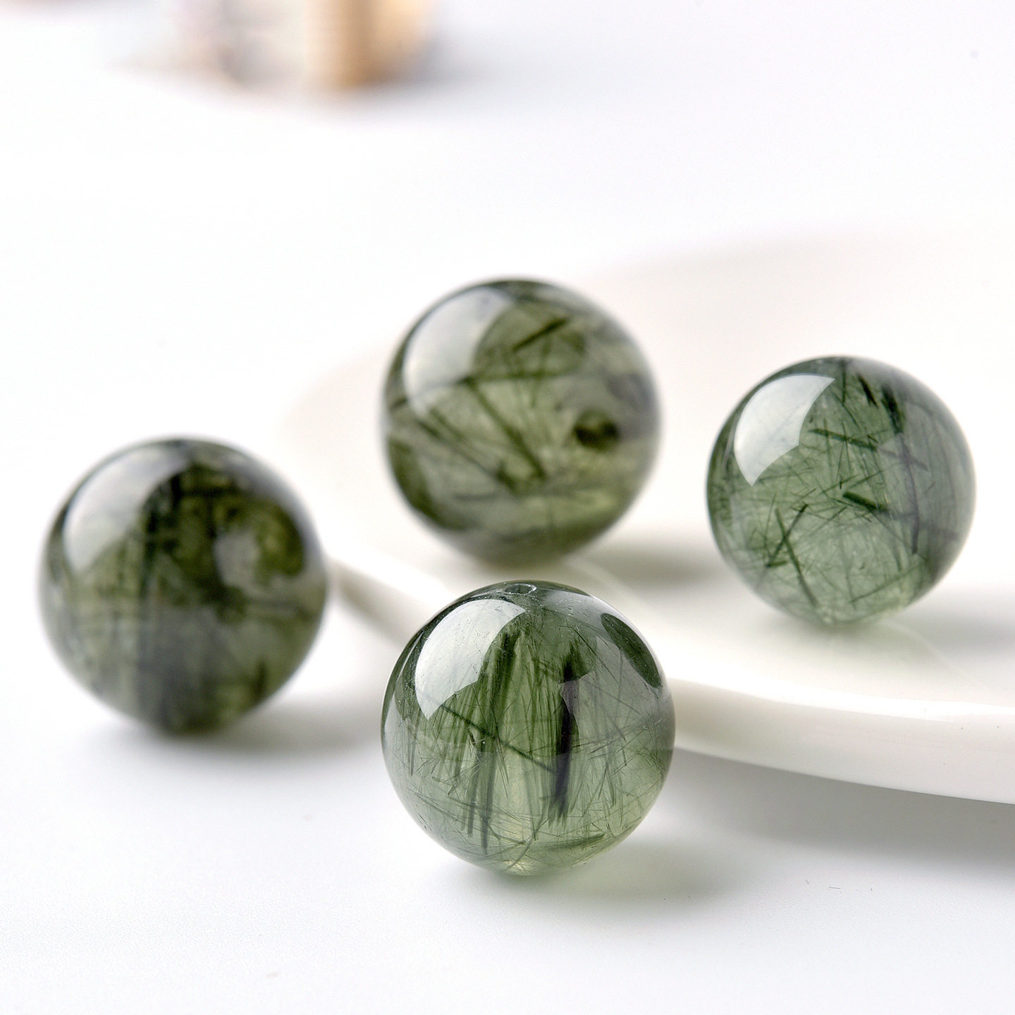 天然绿发晶散珠子圆珠子钛晶超七diy手串多宝配珠老矿绿水晶单珠