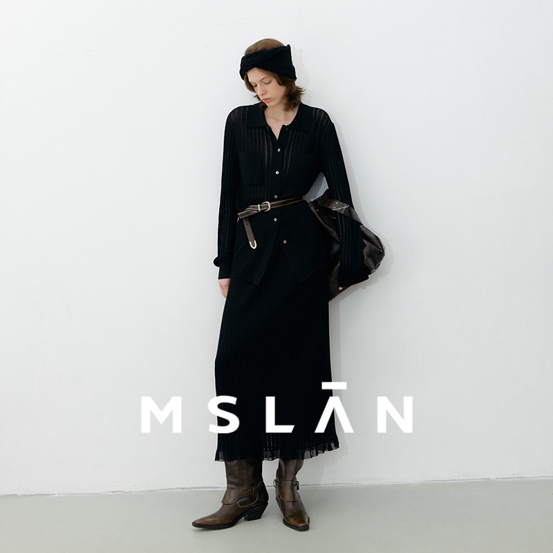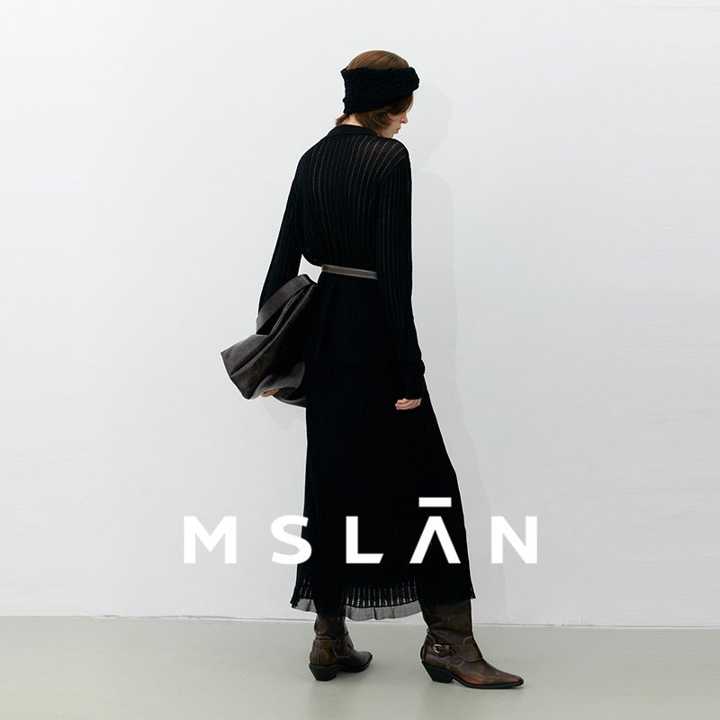 「亚麻老钱」MSLAN法式高级感套装微镂空针织半裙两件套