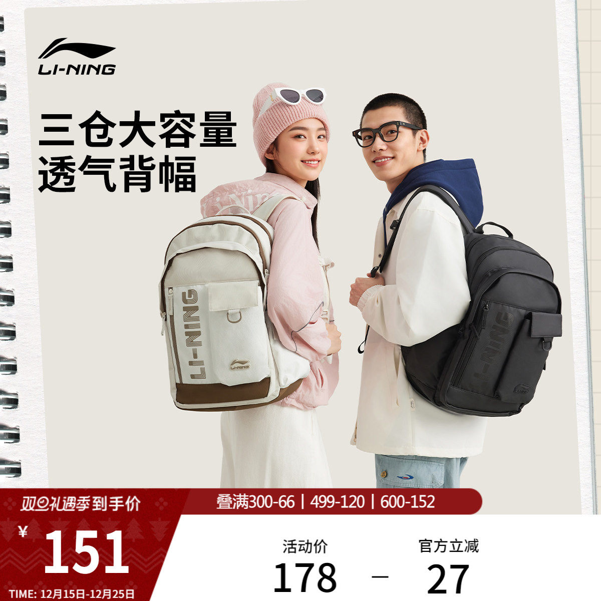 李宁双肩包男女2026新款旅游轻便高颜值小众背包学生书包运动包