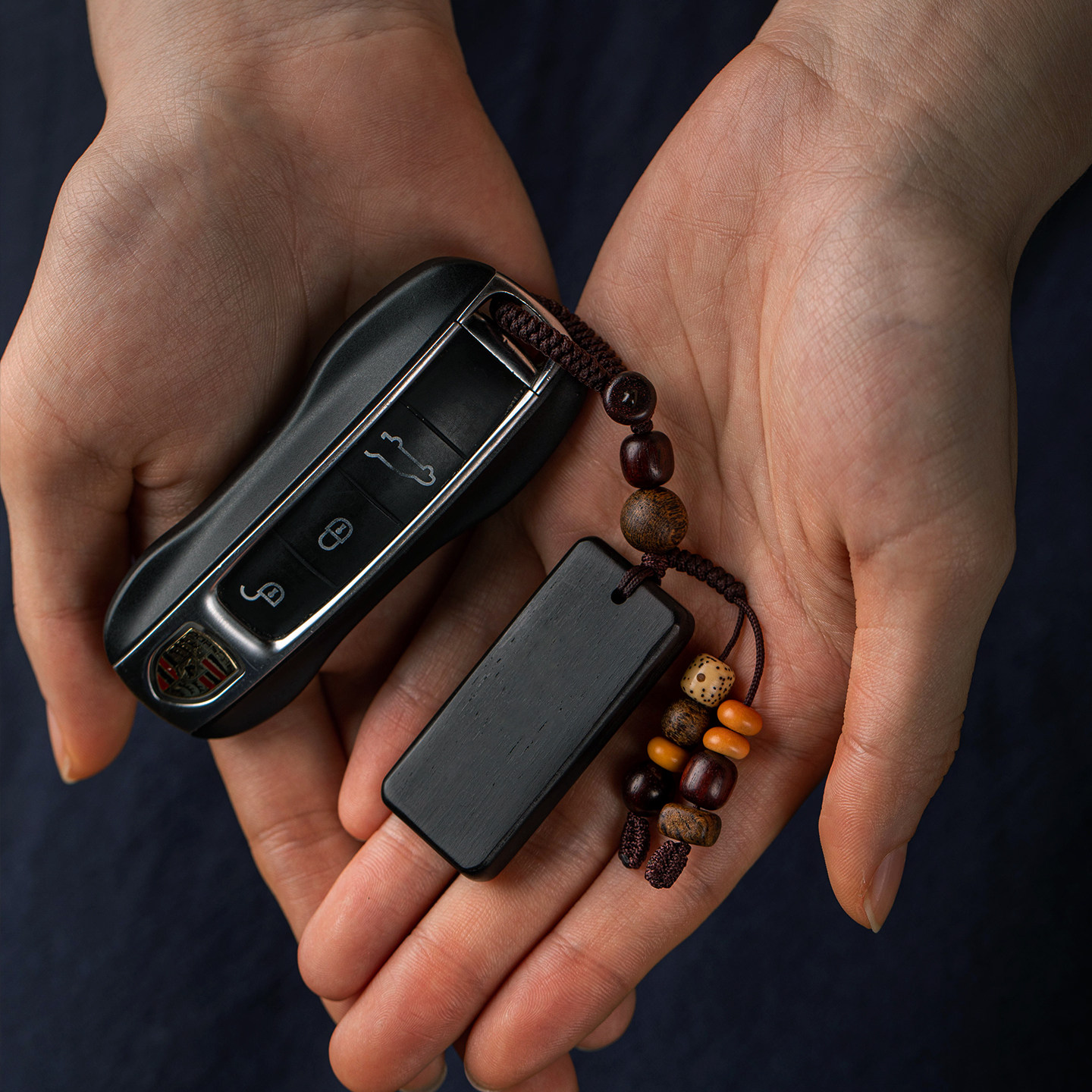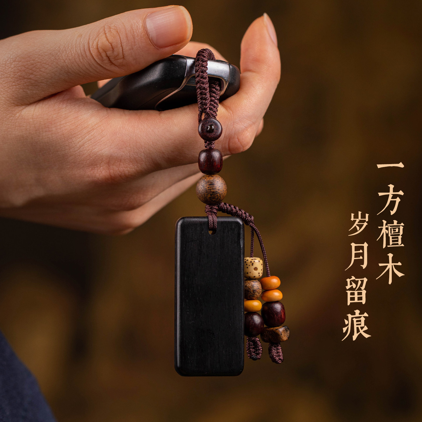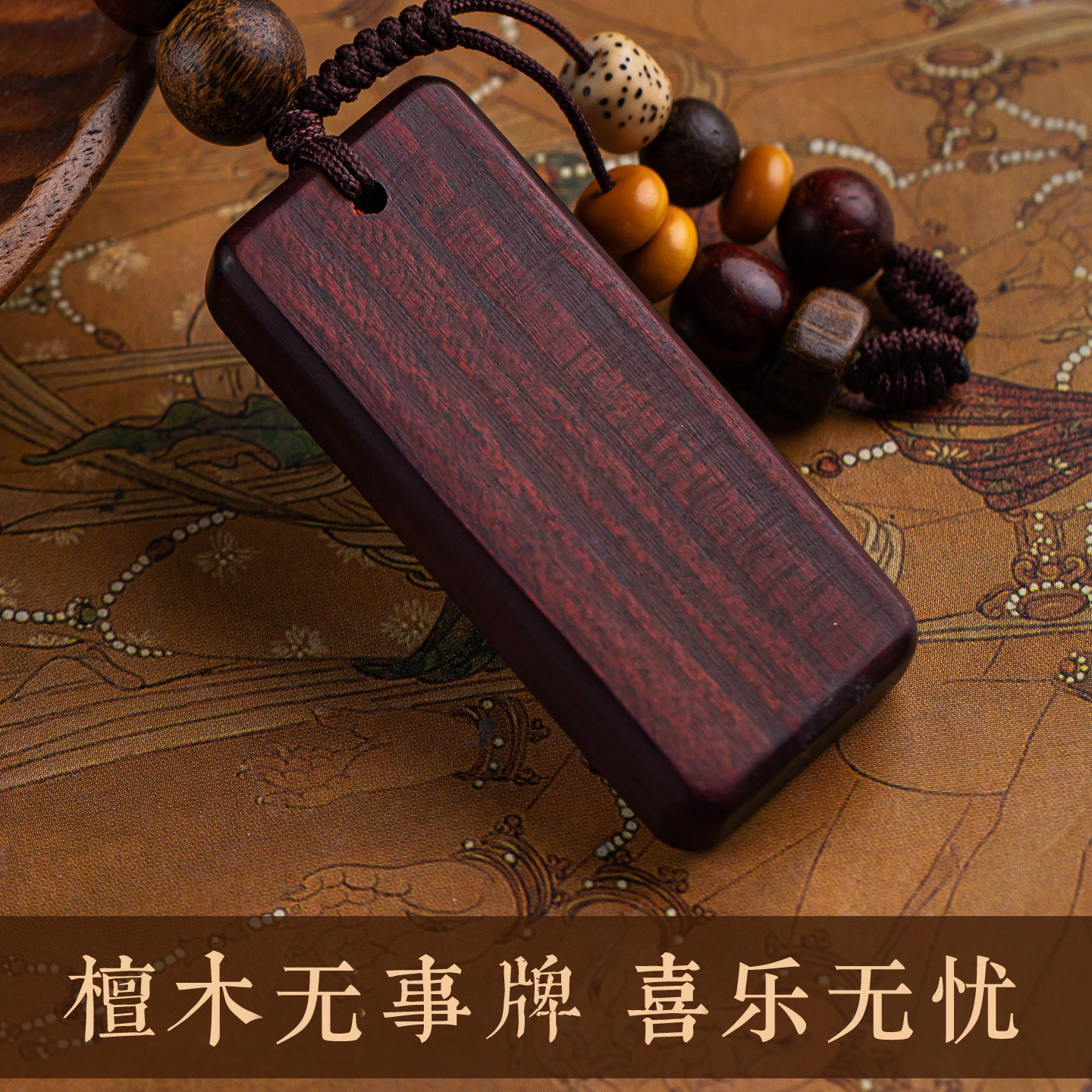 大善堂天然紫檀木钥匙扣黑檀木无事牌挂件刻字男女款汽车挂件礼物