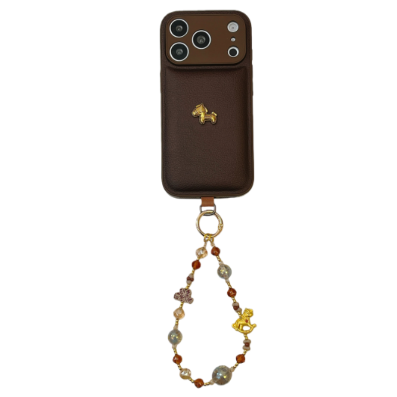 恬妤 秋冬美拉德立体小金马适用于iphone17pro手机壳14气垫皮质17promax马年16pro手链条17精孔全包13pro简约