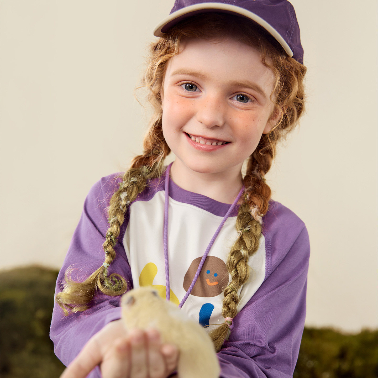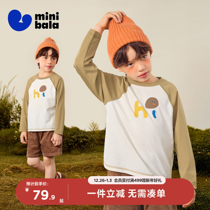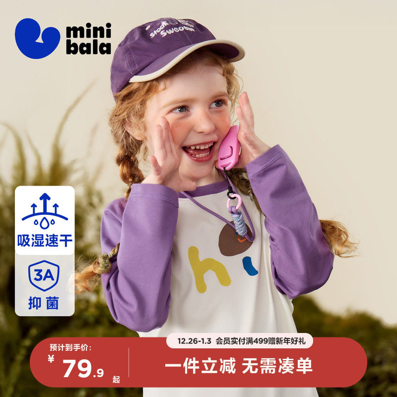 [吸湿速干]迷你巴拉巴拉男女童长袖T恤2025秋新品抑菌插肩袖上衣