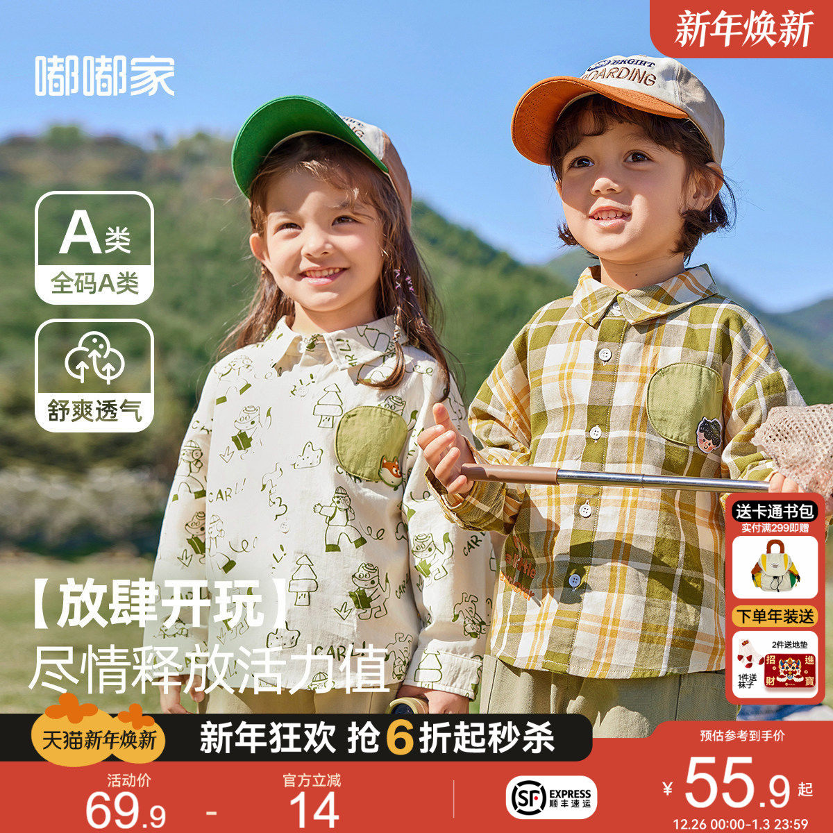 嘟嘟家宝宝衬衫纯棉春秋新款儿童格子衫春季男童春装女童衬衣韩版