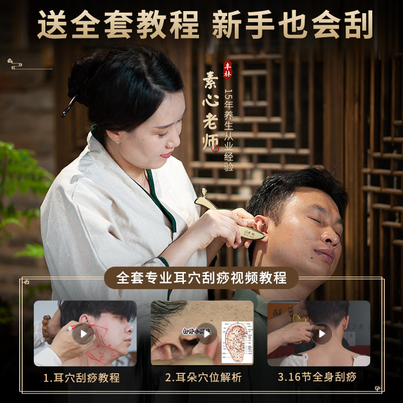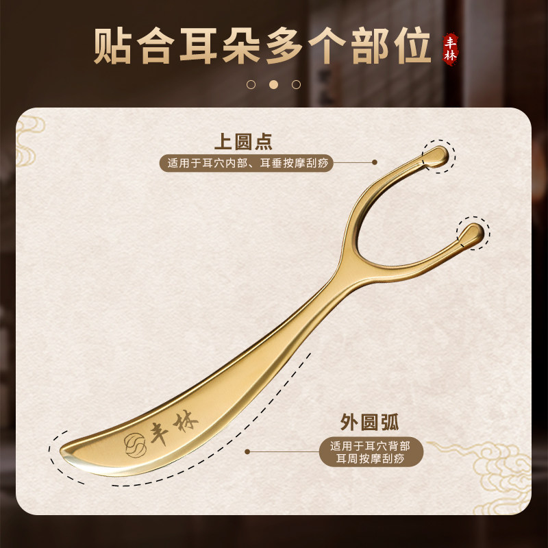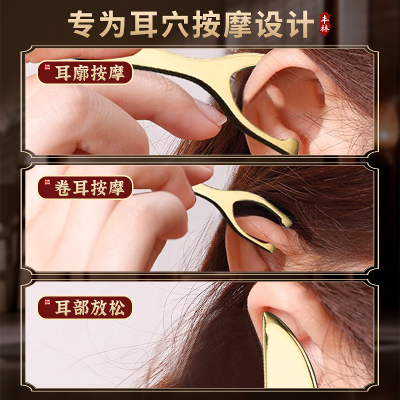 丰林纯黄铜耳穴刮痧板耳朵穴位按摩耳面部经络铜砭脸部背部肩颈
