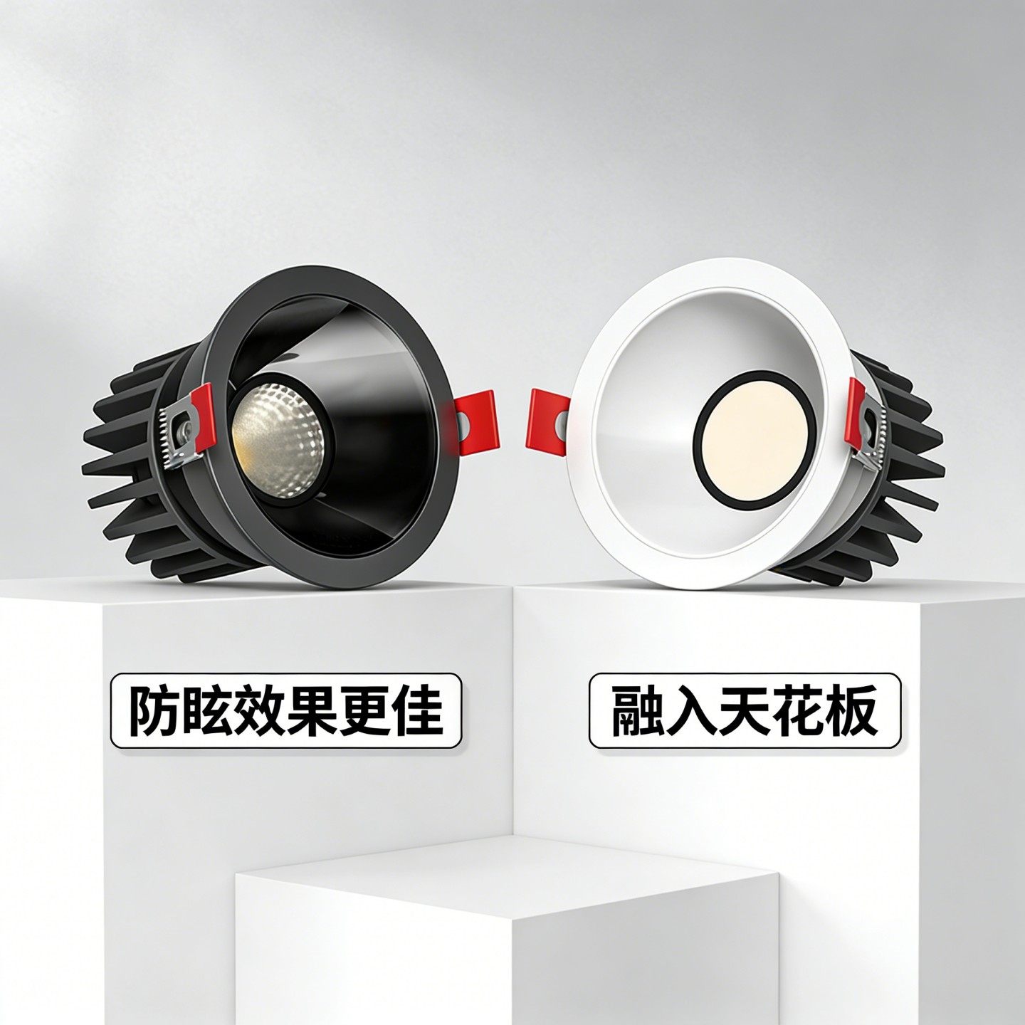 射灯LED天花灯小山丘嵌入式超亮家用COB筒灯7W可调商用聚光孔灯