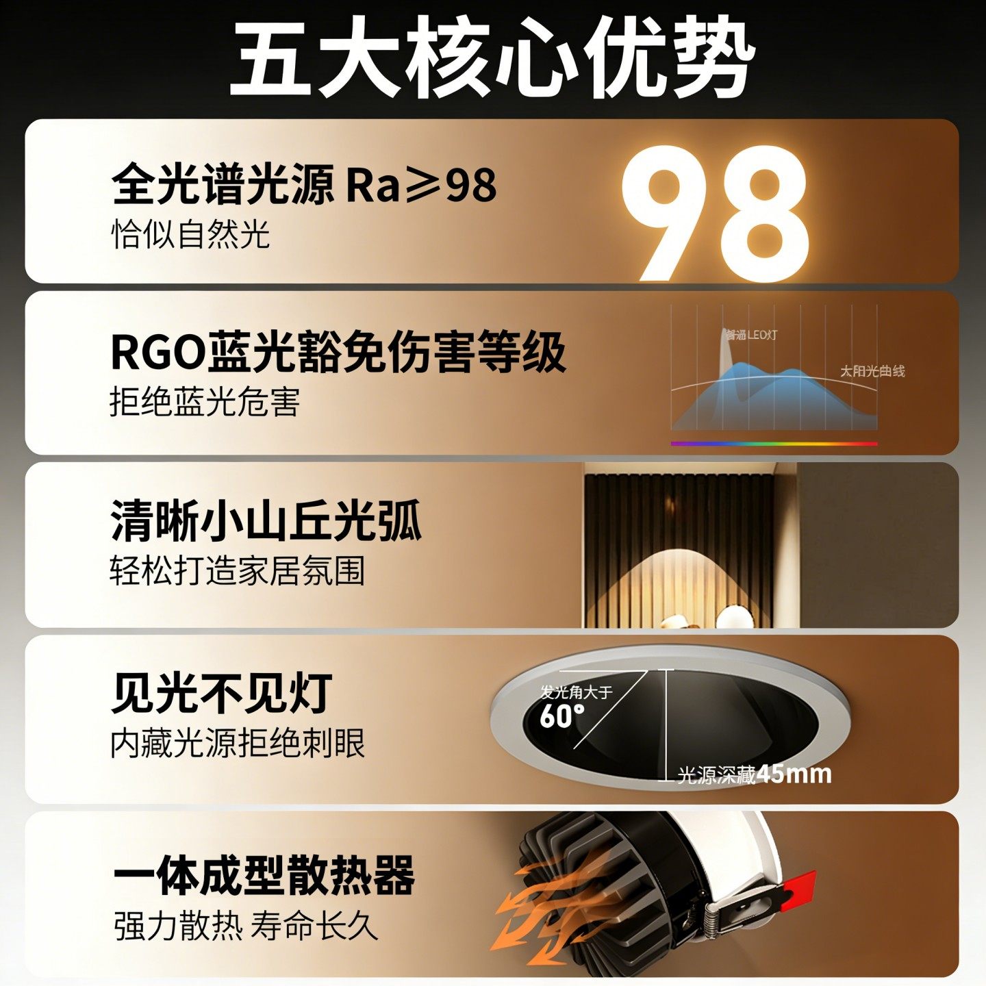 全光谱led射灯防眩光客厅无主灯嵌入式深杯小山丘天花灯开孔7.5cm