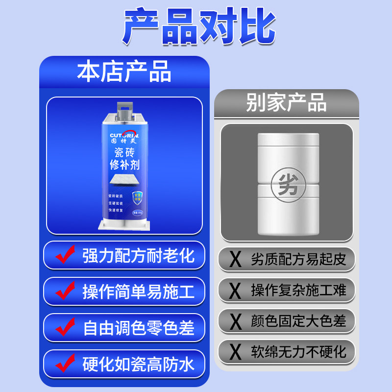 瓷砖修补剂釉面修复地砖浴缸马桶蹲厕破损遮丑釉面修复胶地板砖墙砖大理石补坑洞裂缝隙大理石陶瓷修补修复膏