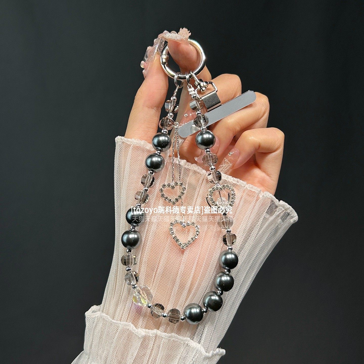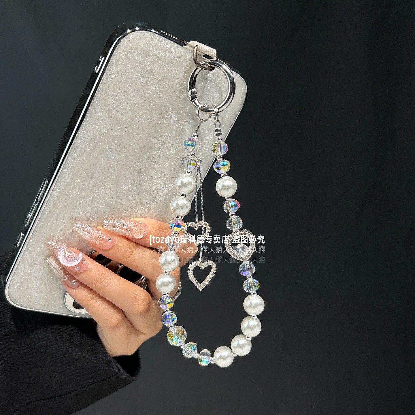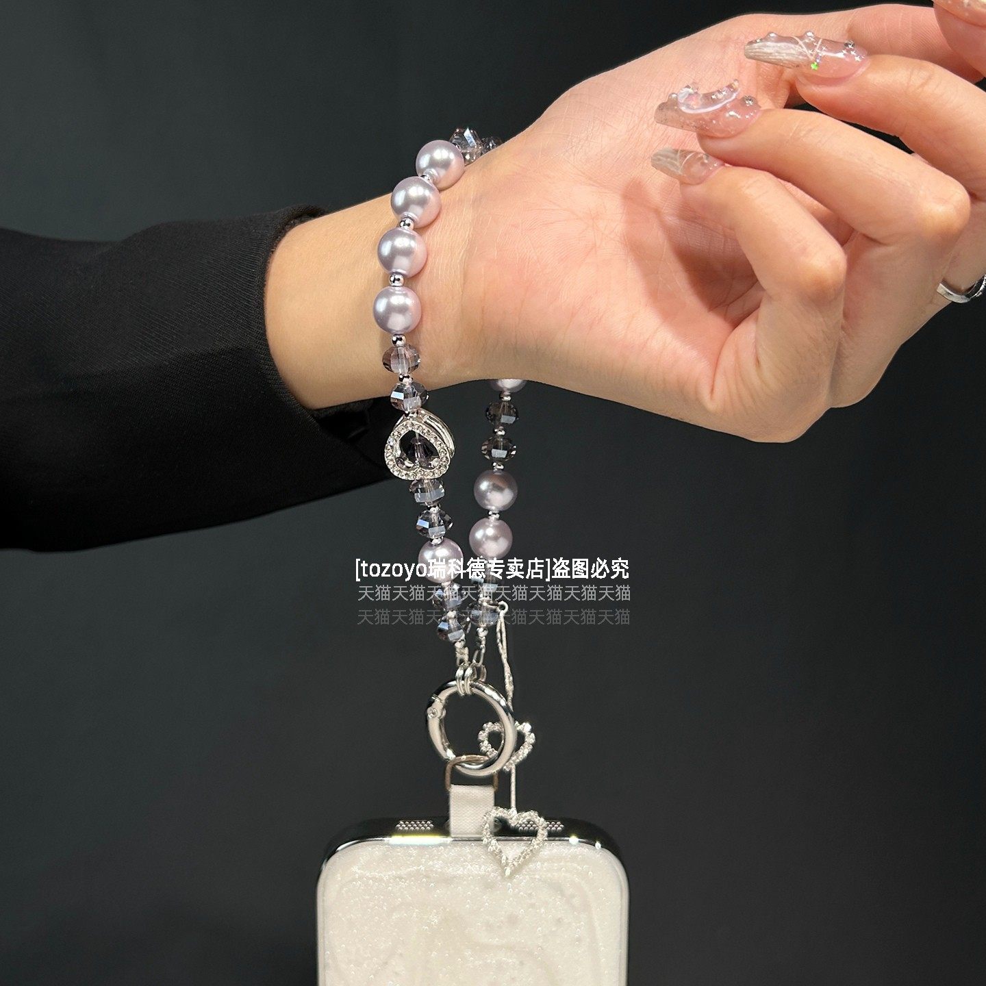 爱心流苏手机链高级仙气手腕链条挂饰超精致水晶珍珠挂链轻奢名媛气质手链防丢钥匙包挂件好看串珠腕带垫片壳