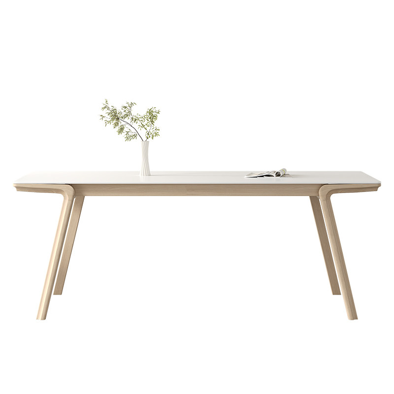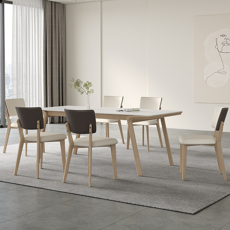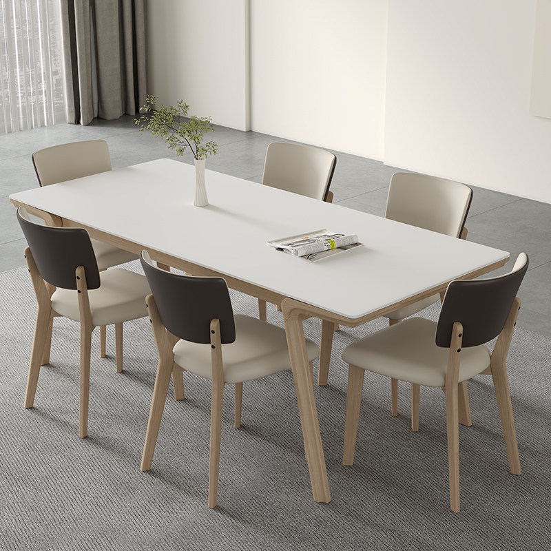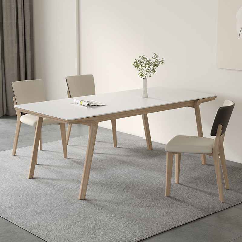 原木奶油风岩板餐桌哑光纯白面家用简约北欧日式白蜡木轻舟餐桌椅