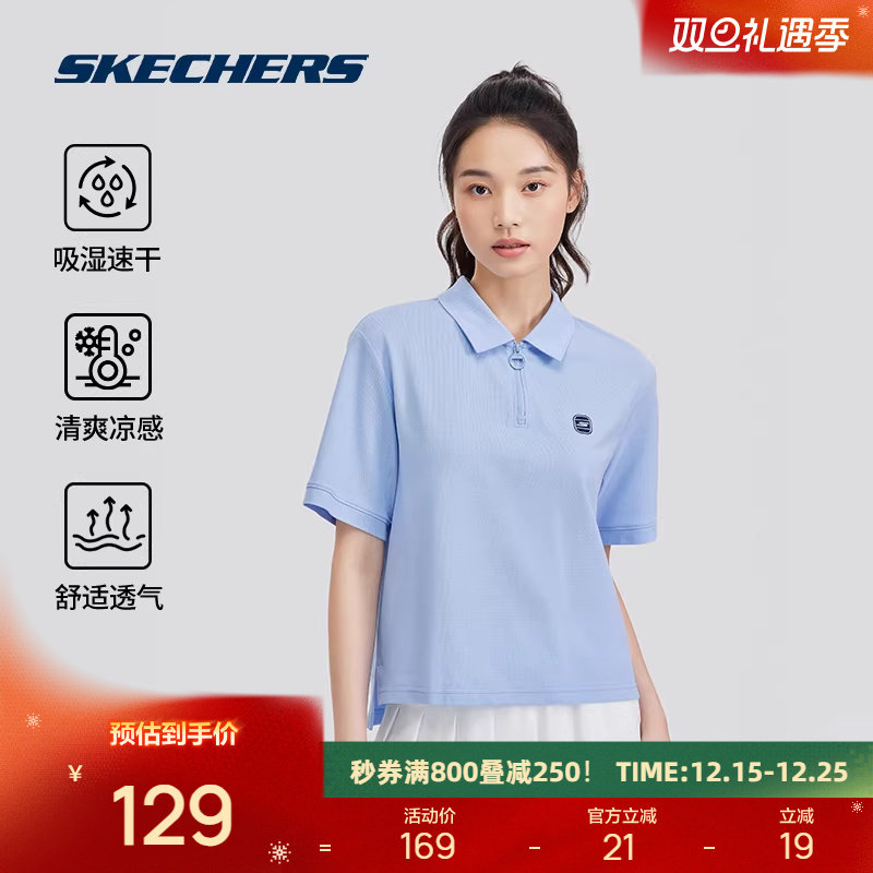 斯凯奇速干凉感POLO衫新品女子短款学院风百搭T恤时尚透气经典款