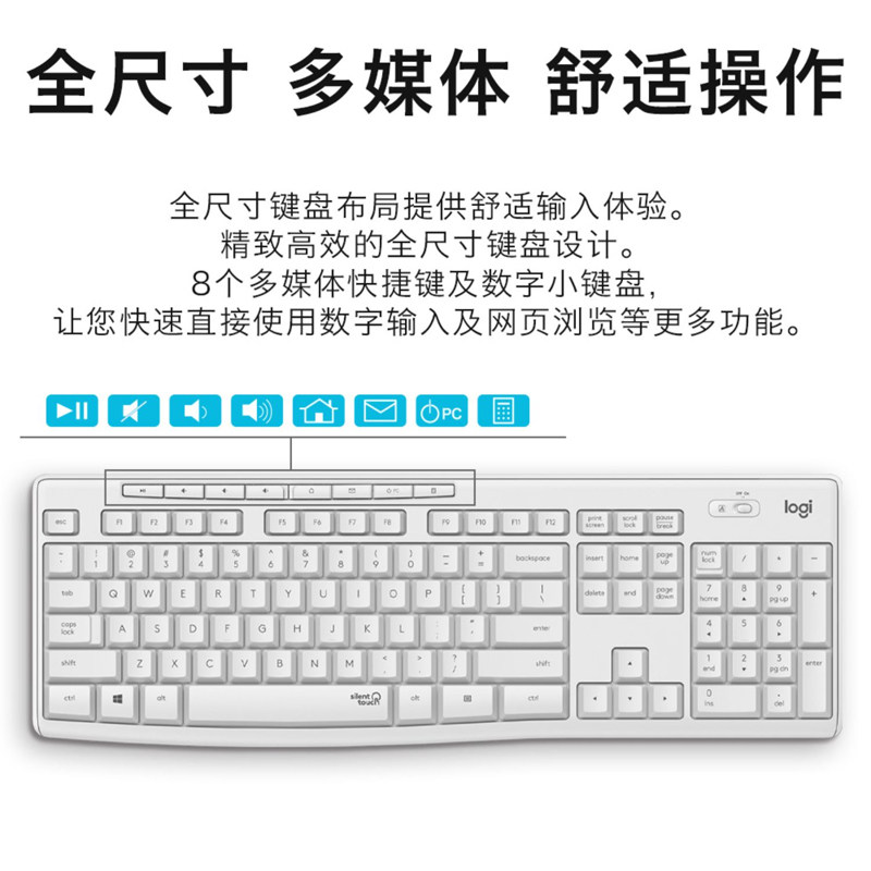 罗技轻音系列MK295无线键鼠套装办公台式笔记本打字家用键盘鼠标