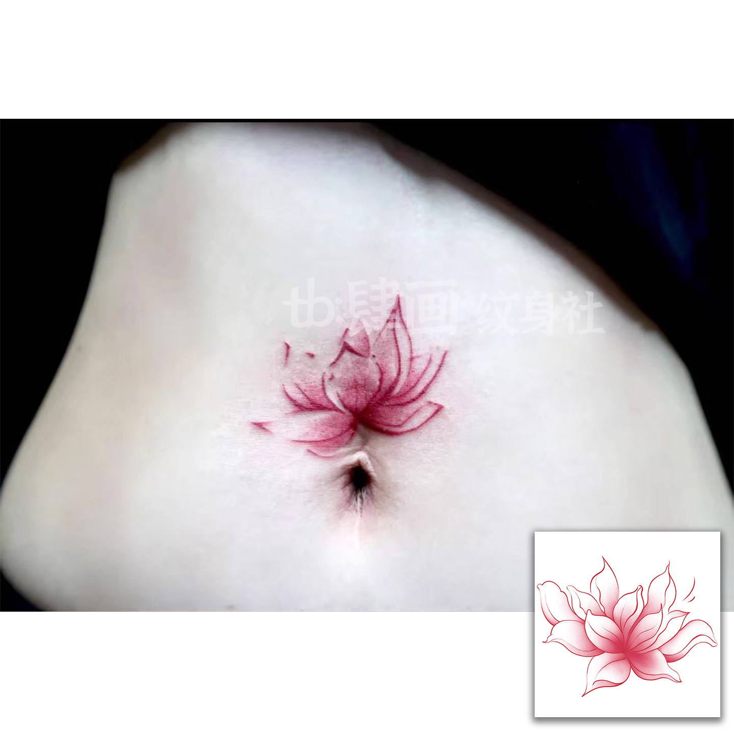 新款莲花女神 肚子疤痕遮盖纹身贴 古风高级防水持久性感纯欲可洗