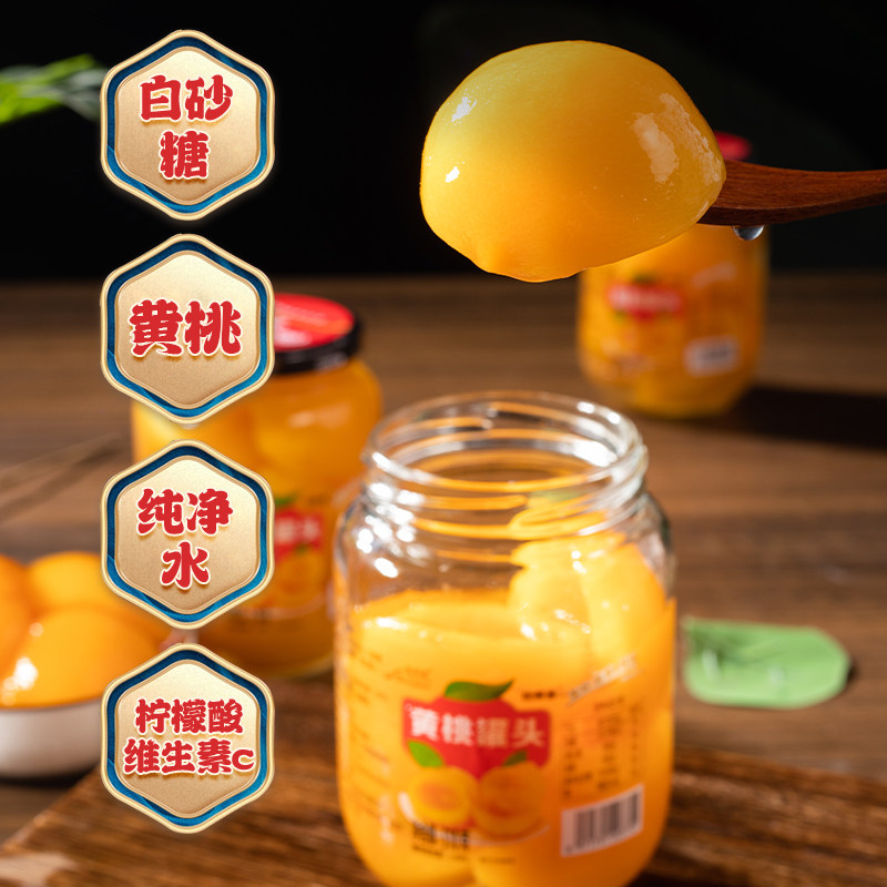 奇伟黄桃罐头冰糖糖水新鲜玻璃瓶装水果罐头正品什锦罐头480g*4瓶