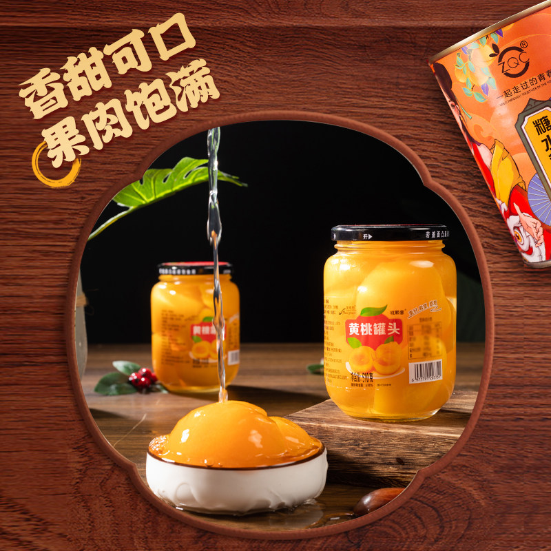 浙梅黄桃罐头510g*4罐玻璃瓶装对开新鲜水果罐头