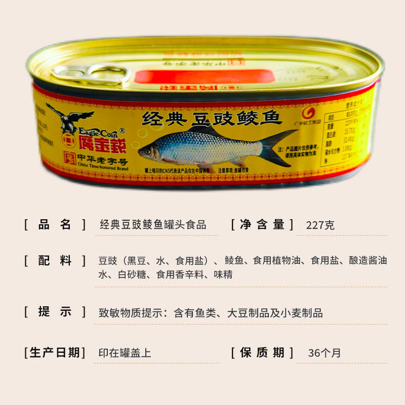 鹰金钱经典豆豉鲮鱼罐头227g下饭菜酒菜拌饭开罐即吃鱼肉熟食金奖