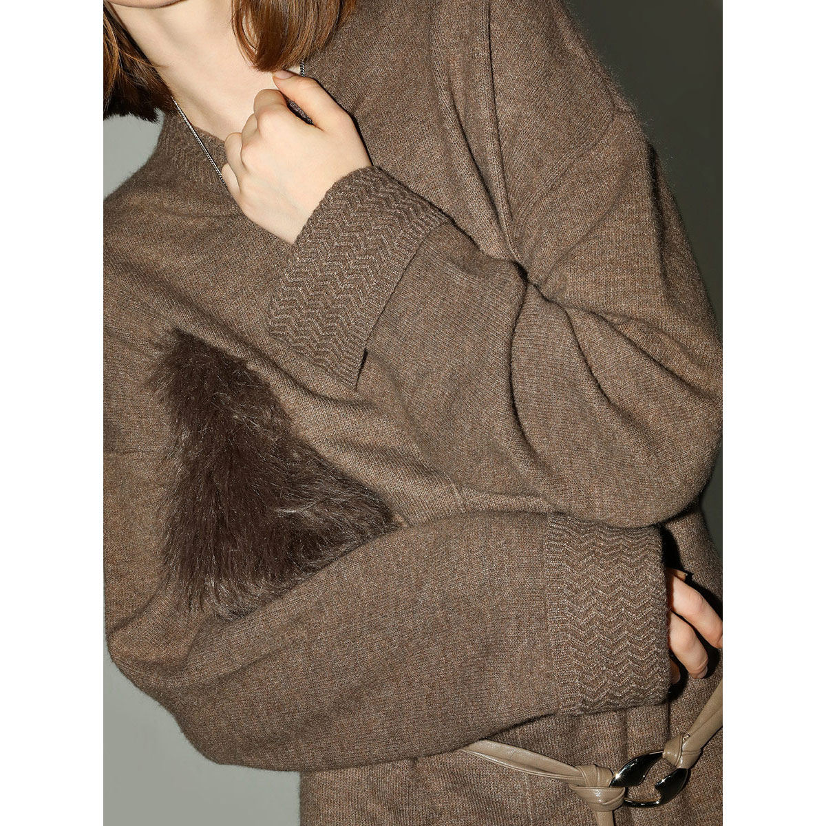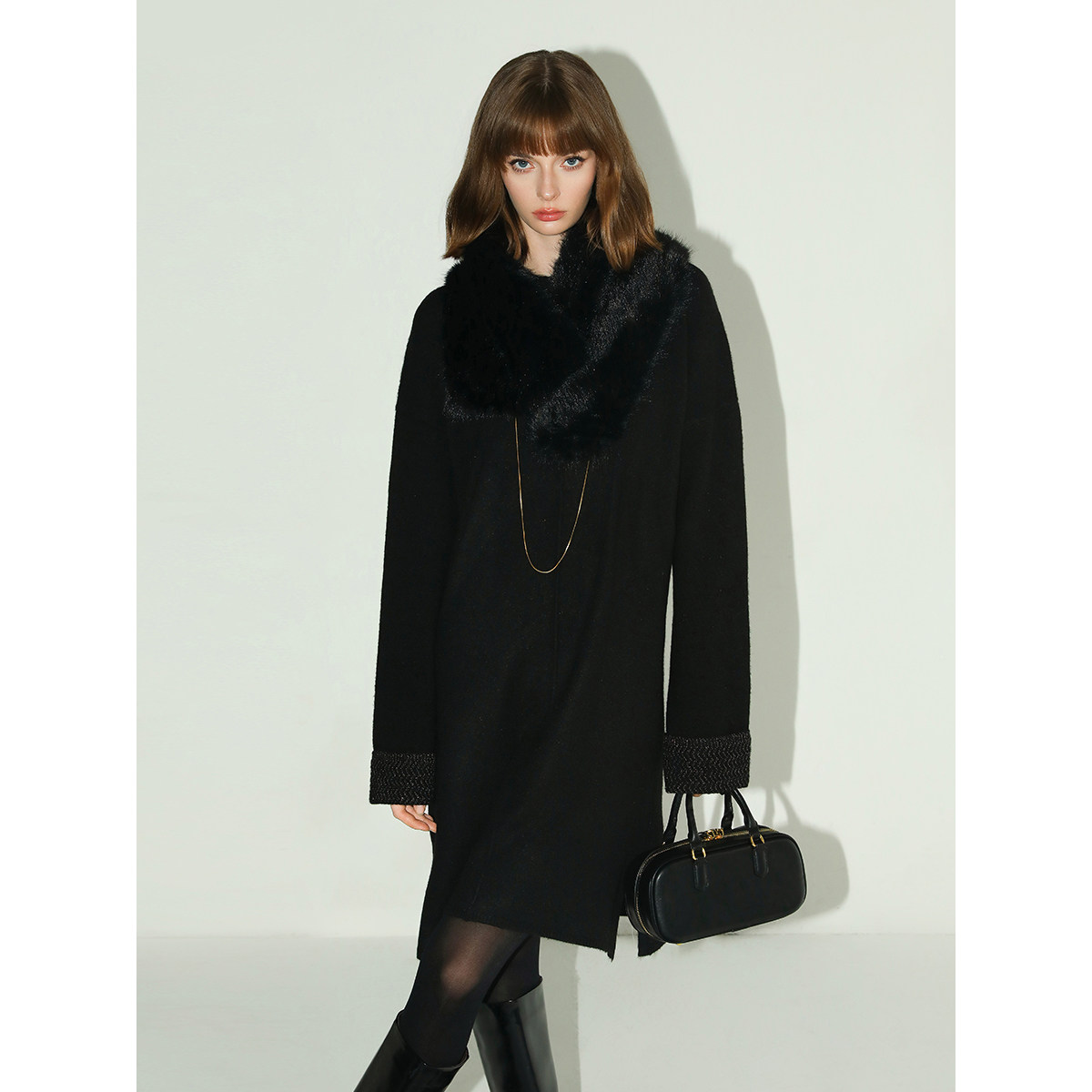 COCOBELLA仿羊绒原色中长款针织连衣裙金丝翻折袖毛衣裙MZ3139
