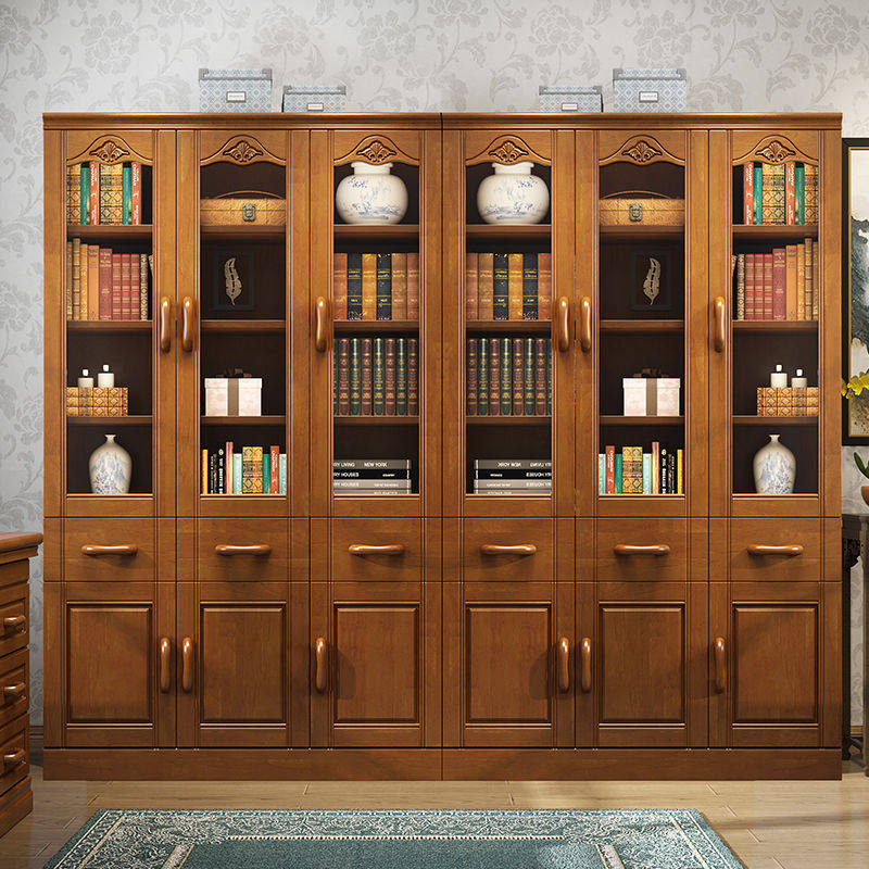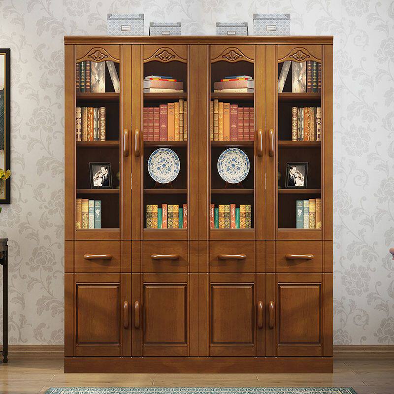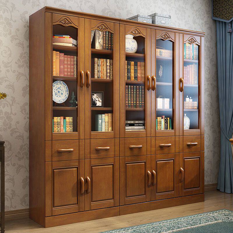 防尘书柜玻璃门实木书架置物架带门落地家用简约客厅展示收纳柜子