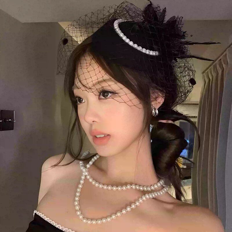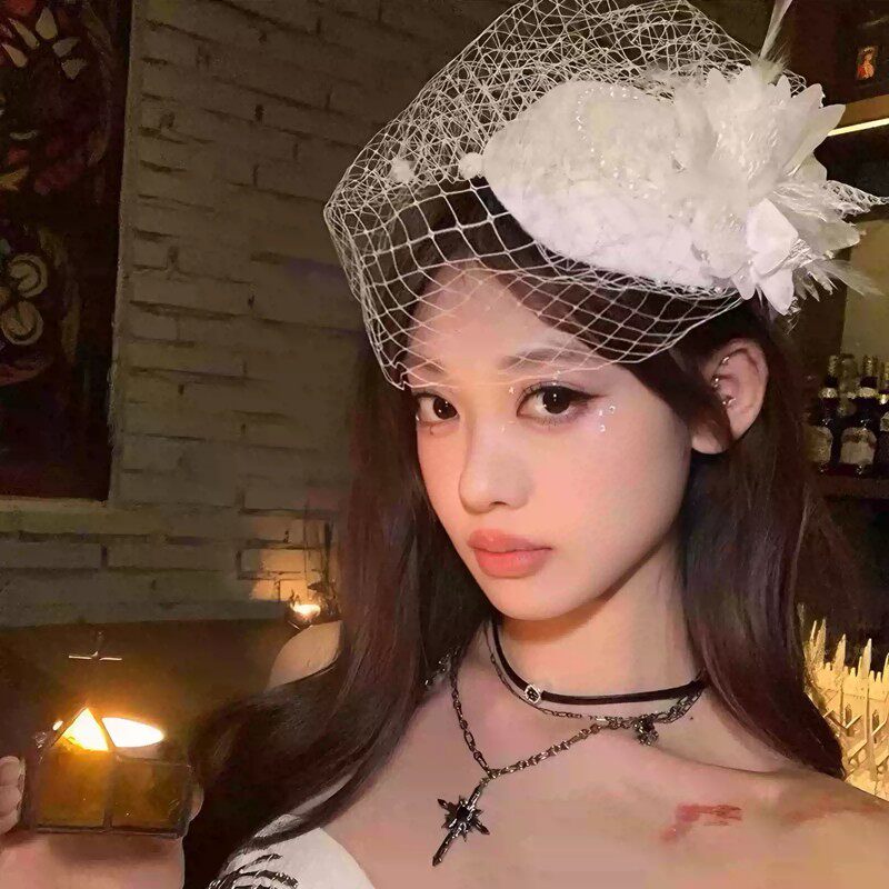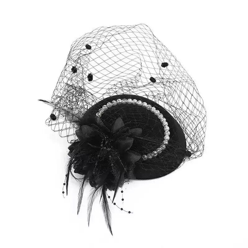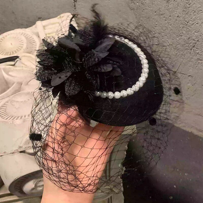 复古民国网纱礼帽女头饰新娘面纱旗袍礼服发饰万圣节装饰法式羽毛