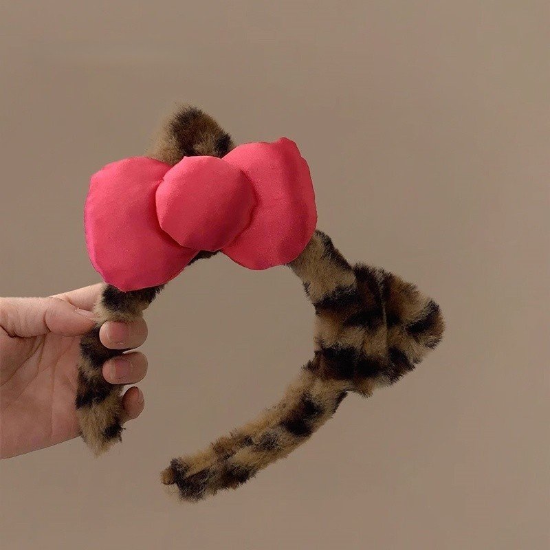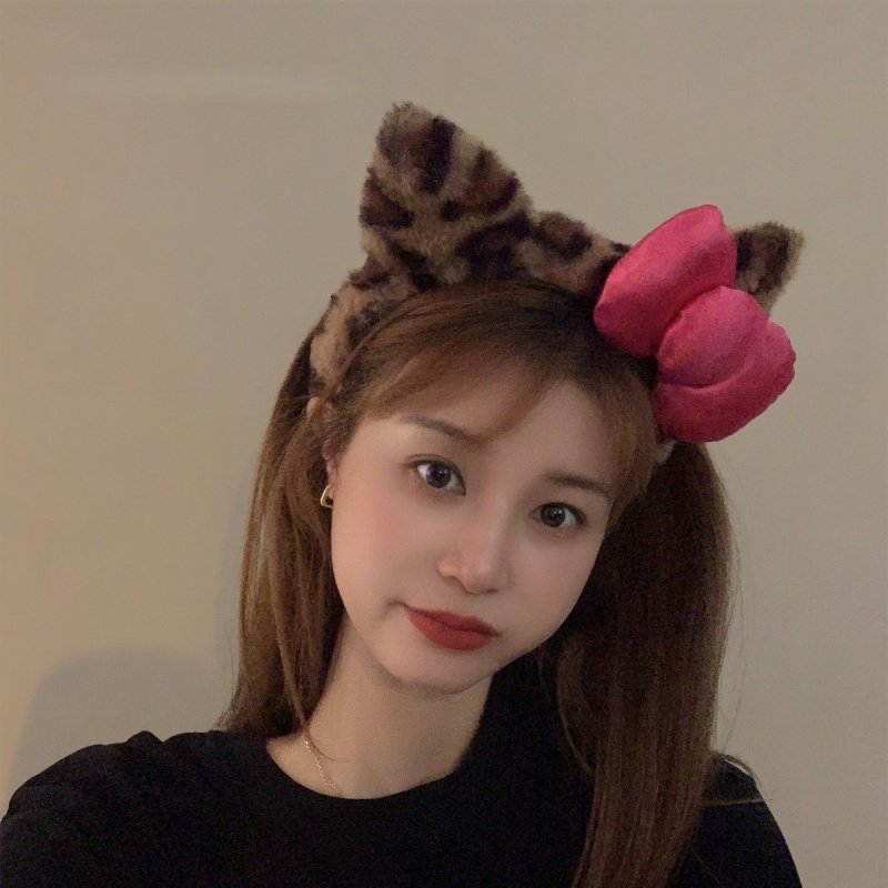 豹纹毛绒洗脸耳朵发箍女发箍新款压发可爱蝴蝶结头箍发捆发卡头饰