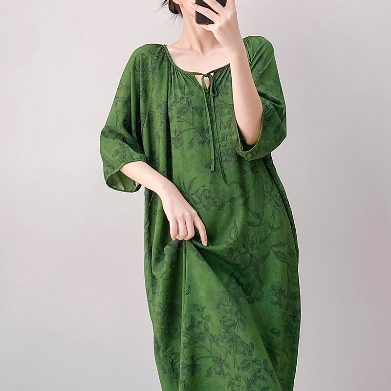 连衣裙女莫代尔短袖睡裙夏薄款打底裙外穿宽松百搭家居服大码长裙