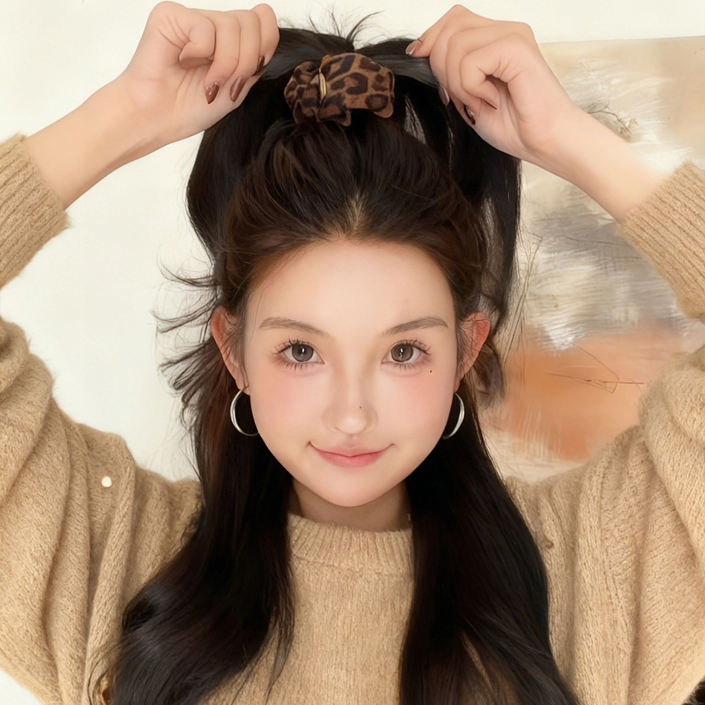 高马尾豹纹发绳啪啪圈女后脑勺扎丸子头固定神器不伤发头绳发圈
