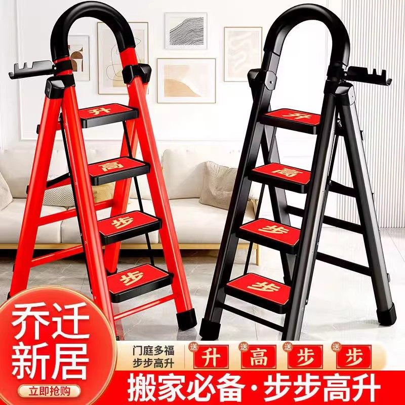 家用折叠乔迁之喜红梯子伸缩楼梯人字梯加厚爬梯台阶步梯搬家梯子