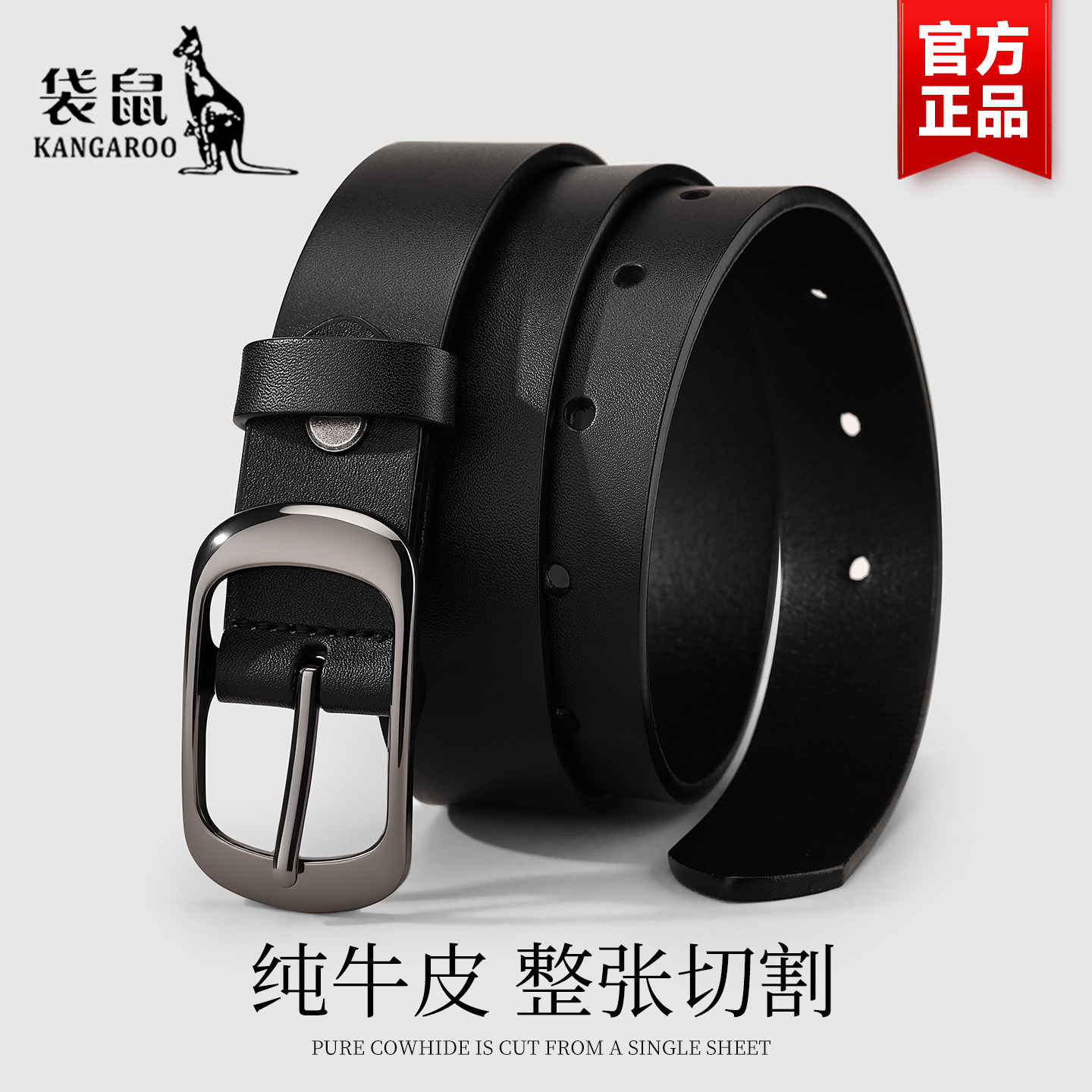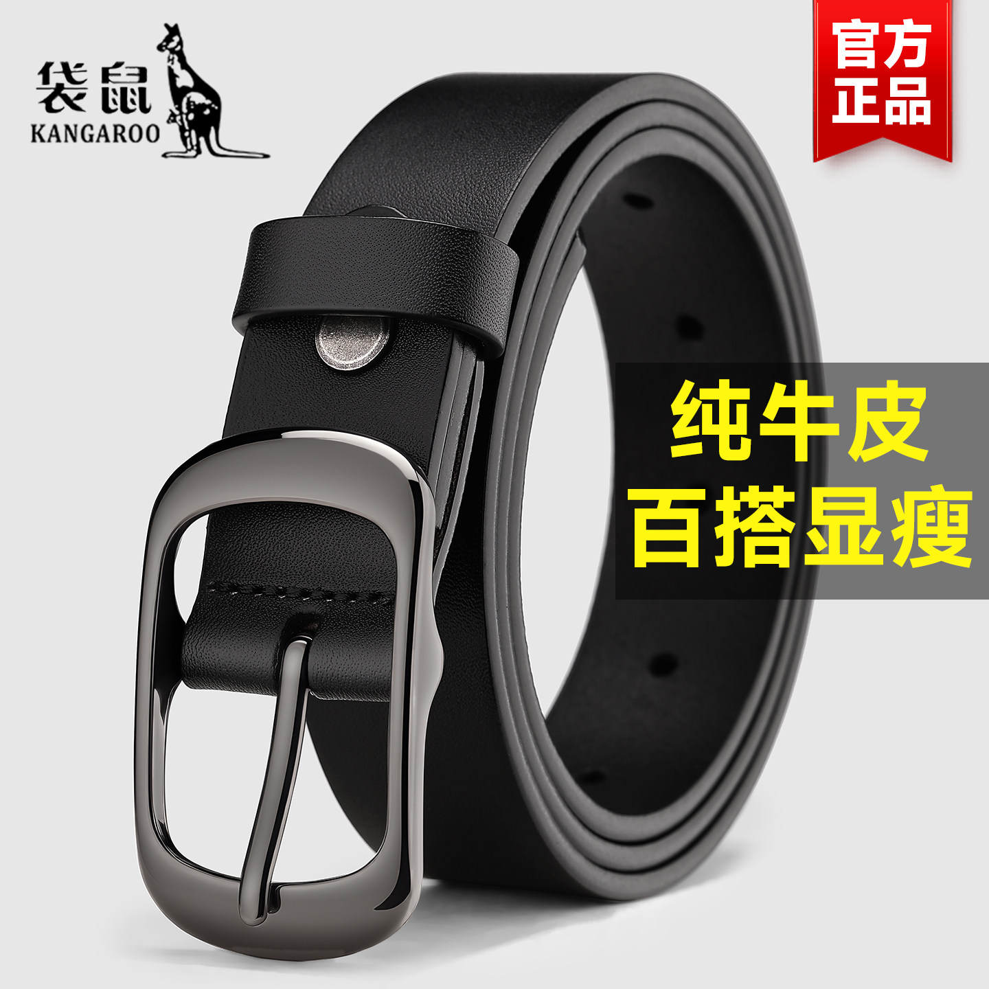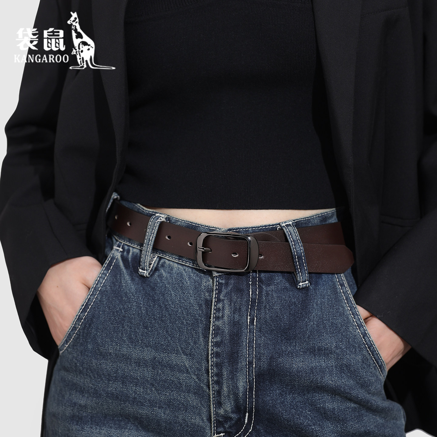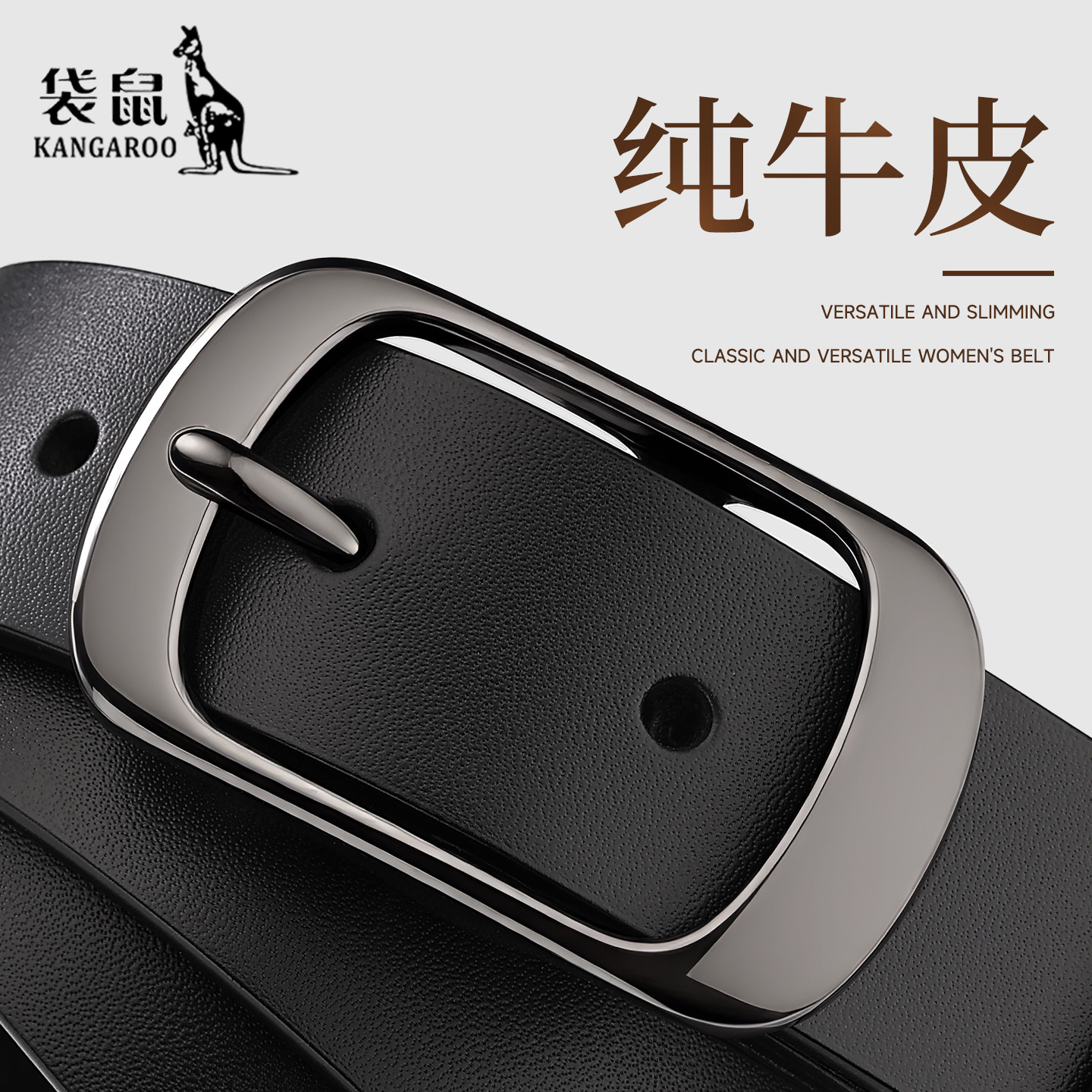 袋鼠腰带女款真皮2025新款纯牛皮女士皮带时尚百搭裤带配牛仔裤女