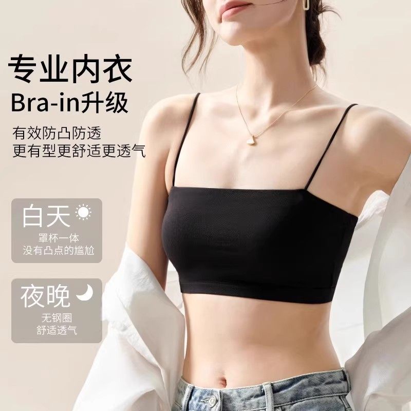 2025女士无痕吊带文胸新款内搭防走光美背内衣带胸垫裹胸夏季薄款
