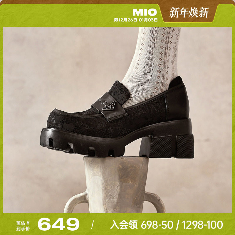 MIO米奥秋季圆头高跟深口单鞋新中式国风刺绣显高厚底乐福鞋女鞋