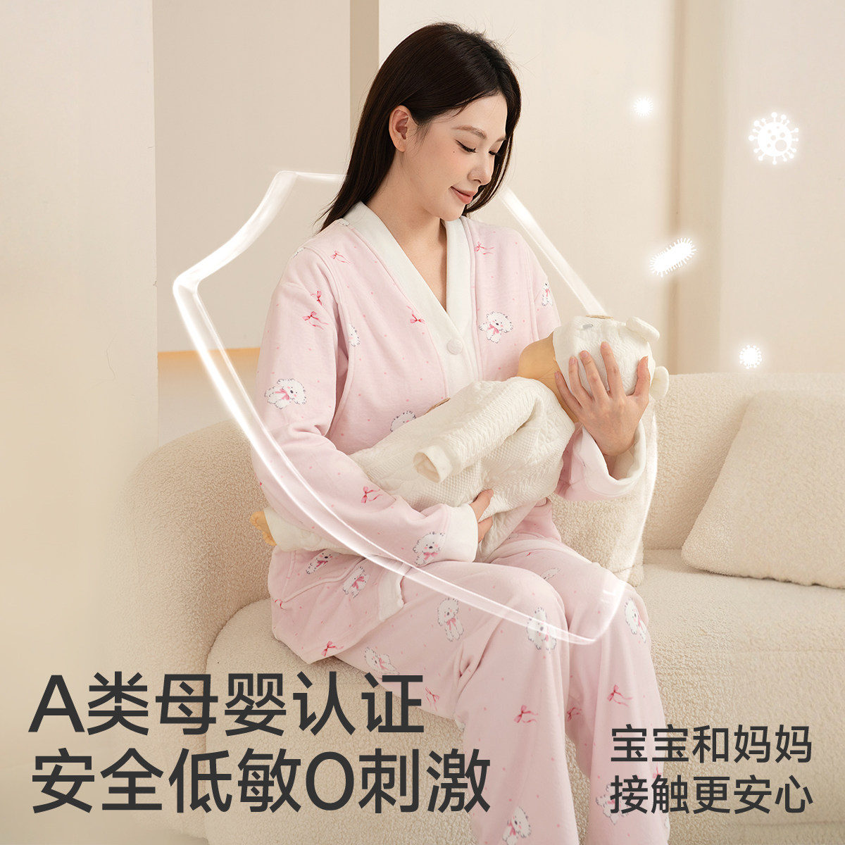 空气棉月子服秋冬季纯棉产后12月份全棉吸汗喂奶产妇哺乳孕妇睡衣