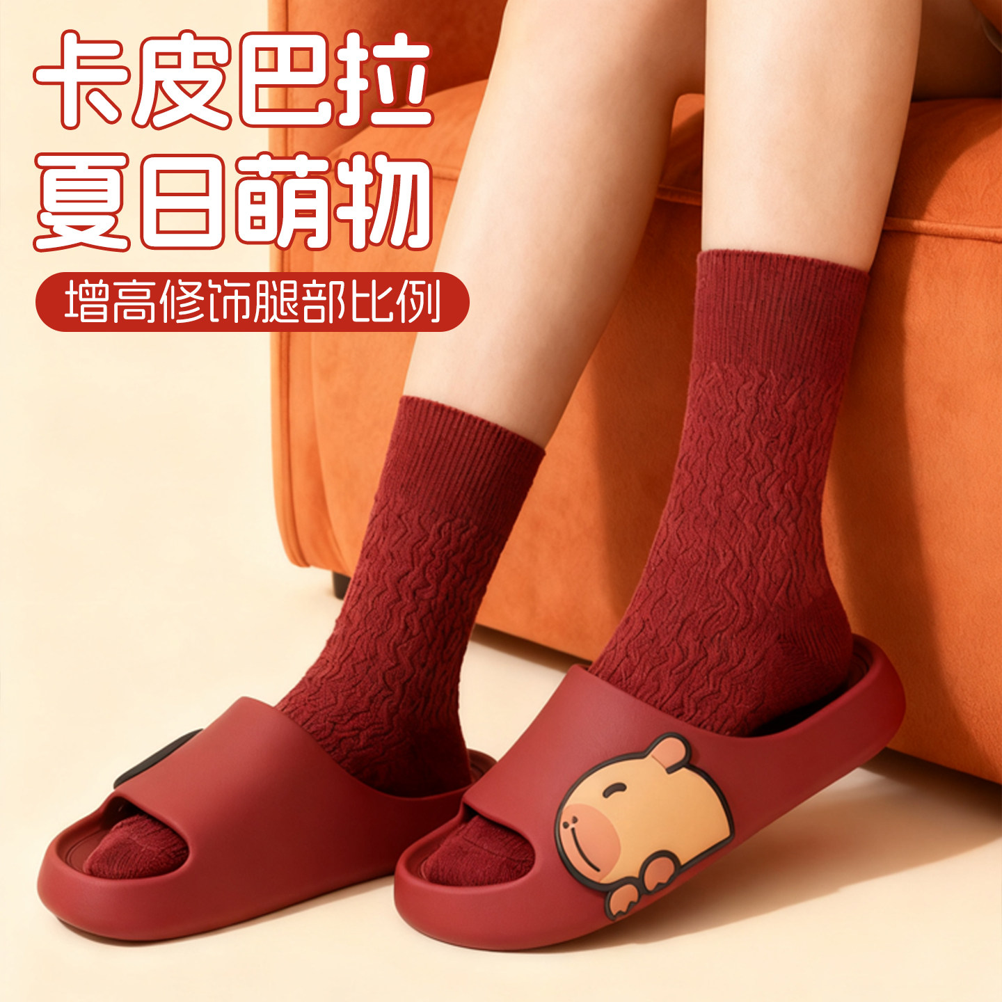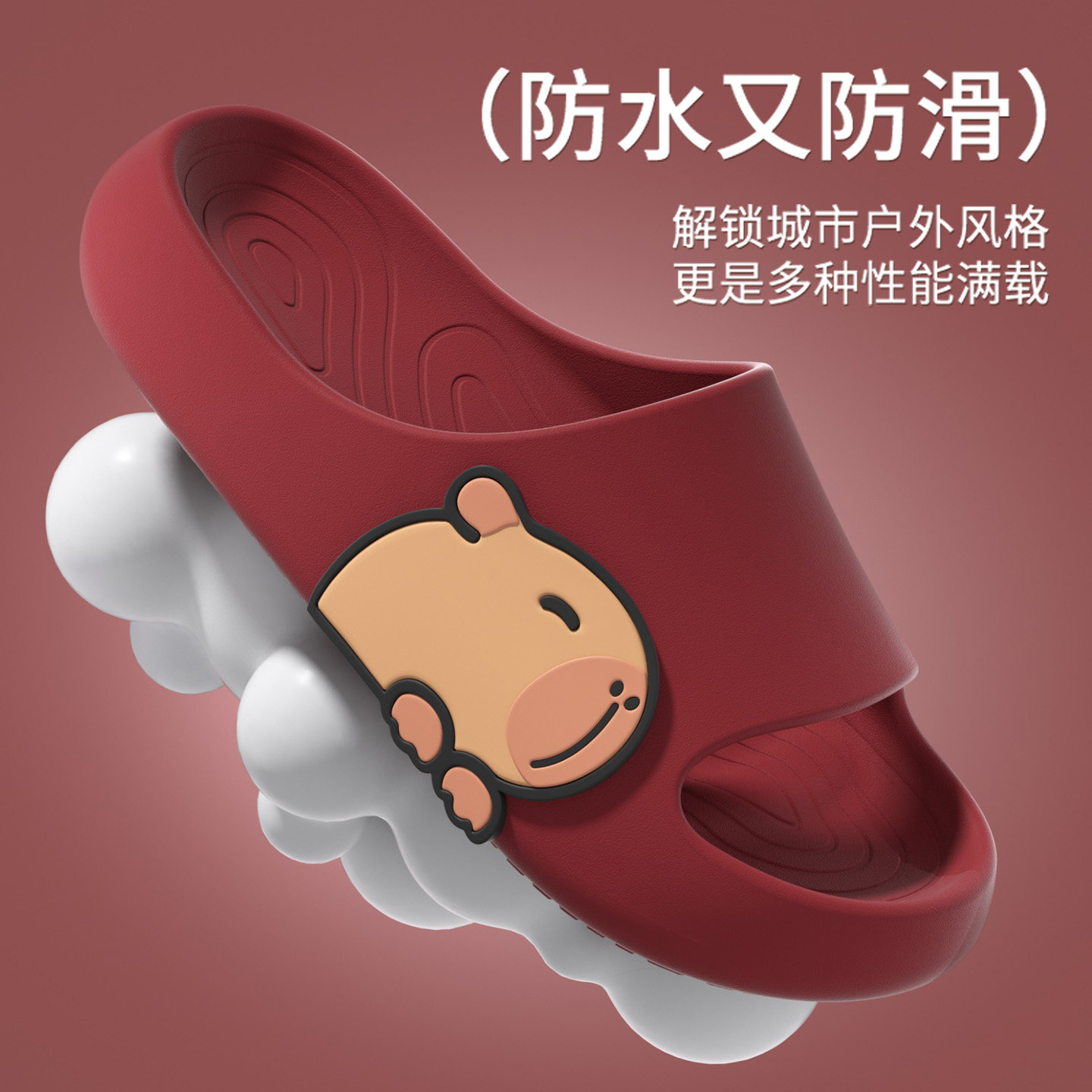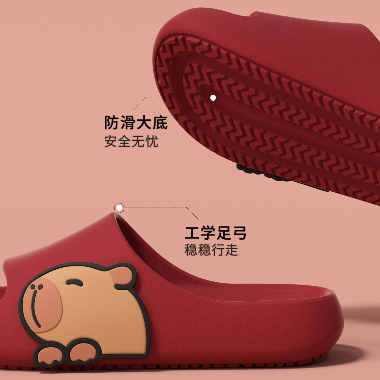 防滑拖鞋女室内家居软底外穿可爱卡皮巴拉亲子凉拖鞋男士红色休闲