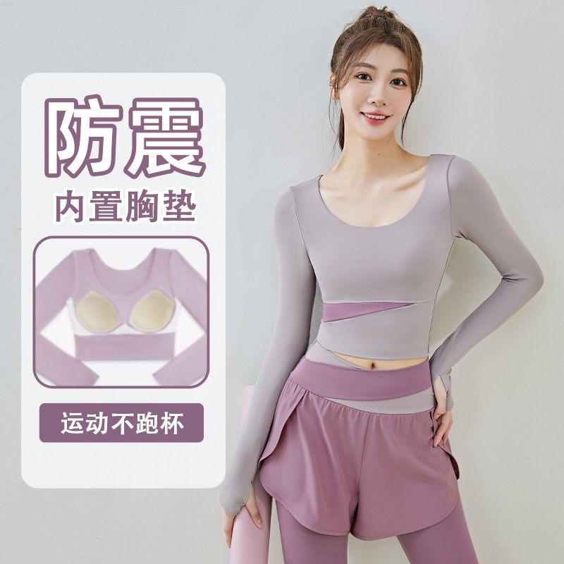 瑜伽服女秋冬2025新款长袖大码上衣专业普拉提训练健身晨跑步套装