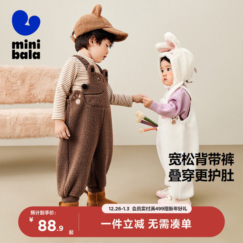 迷你巴拉巴拉男童女童加绒背带裤子春秋新品可爱护肚宝宝