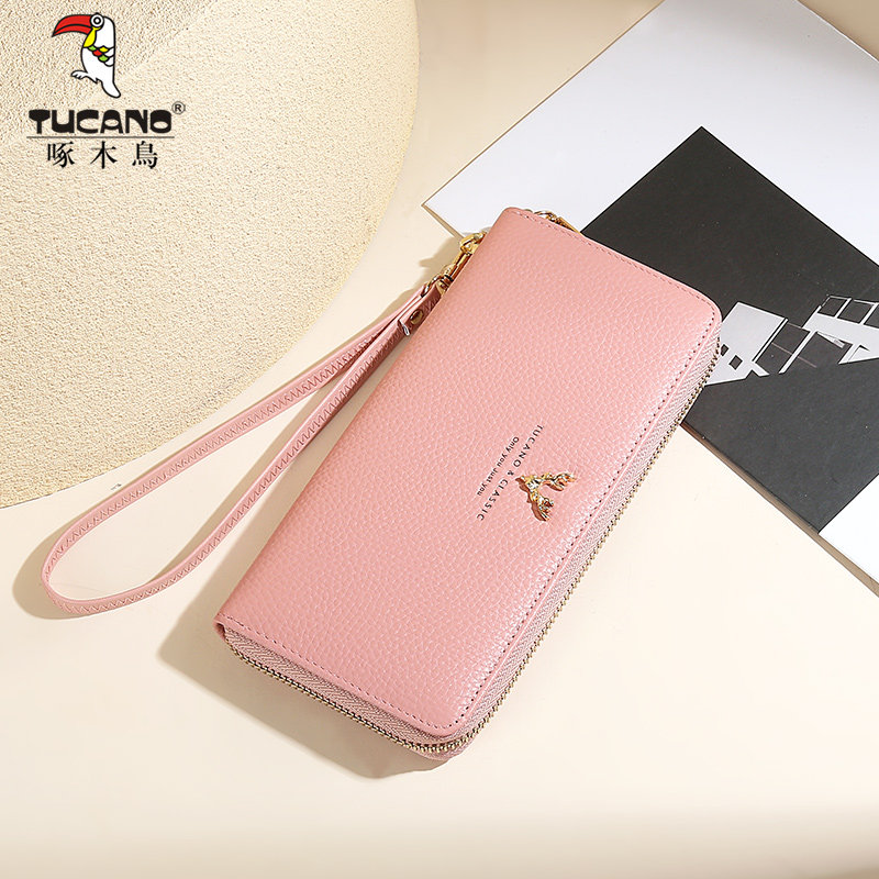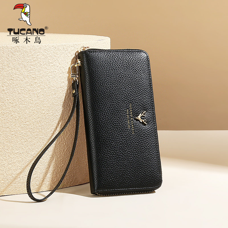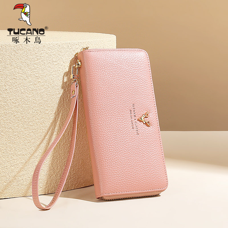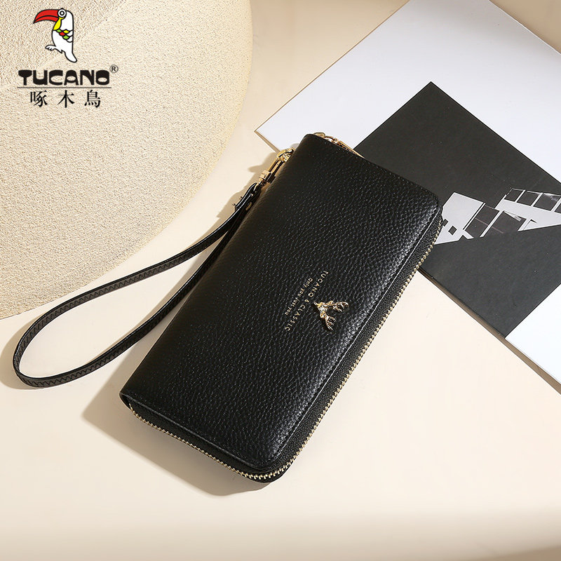 啄木鸟真皮拉链钱包女士2025新款头层牛皮高级感长款多卡位手拿包