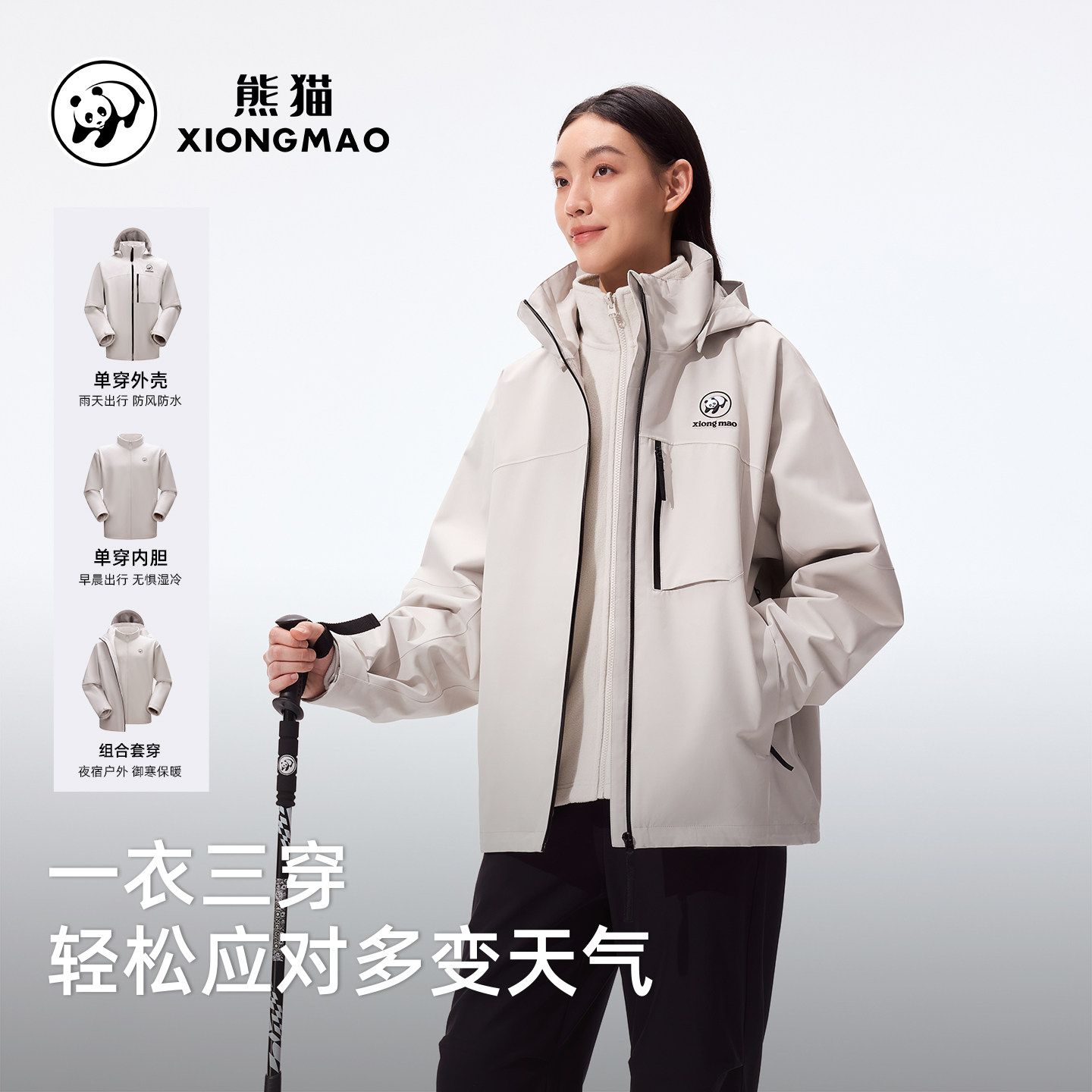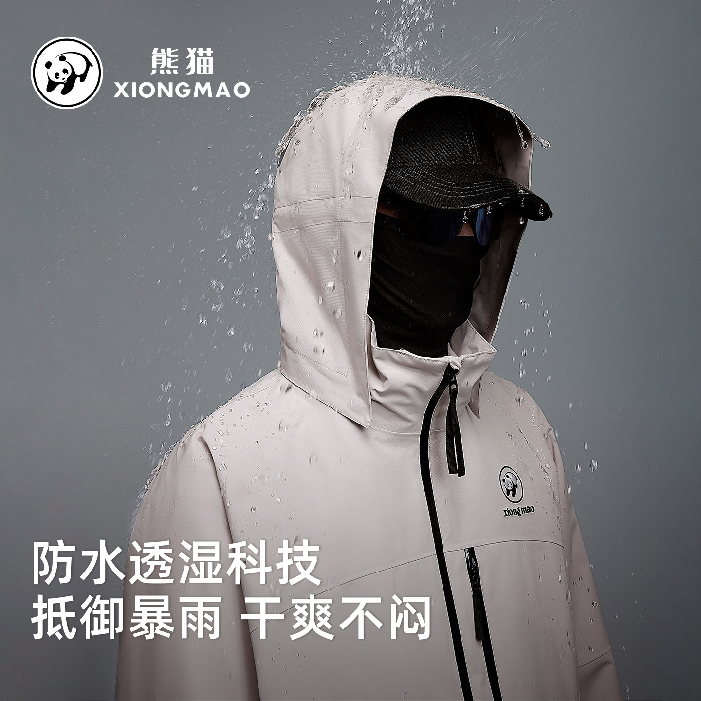 熊猫三合一冲锋衣夹克男装2025新款防泼水防风抓绒外套保暖骑行服