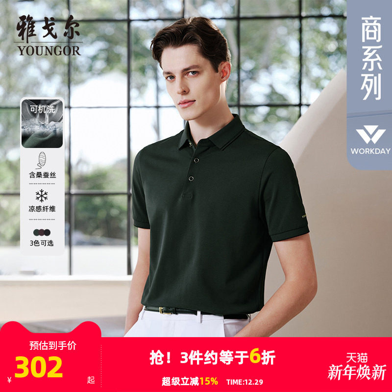 【桑蚕丝+凉感】雅戈尔夏季新款男士短袖POLO衫弹力亲肤棉翻领T恤