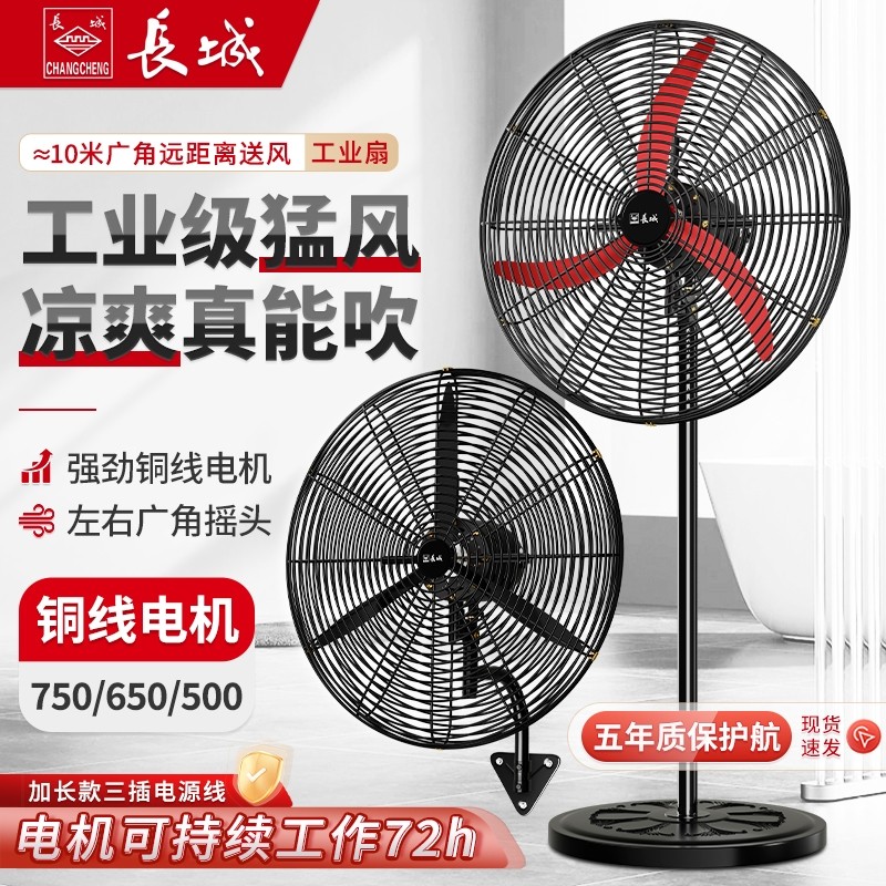 长城工业电风扇强力落地扇大功率商用扇挂壁墙壁扇摇头车间牛角扇