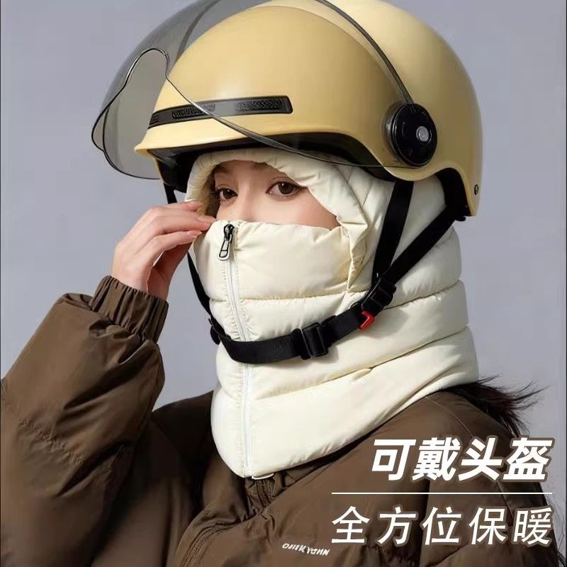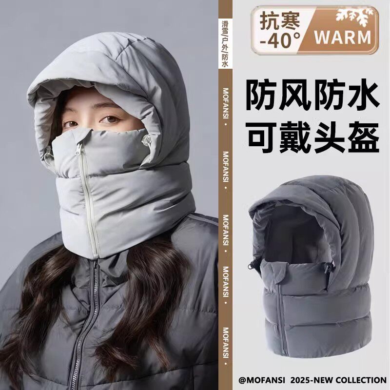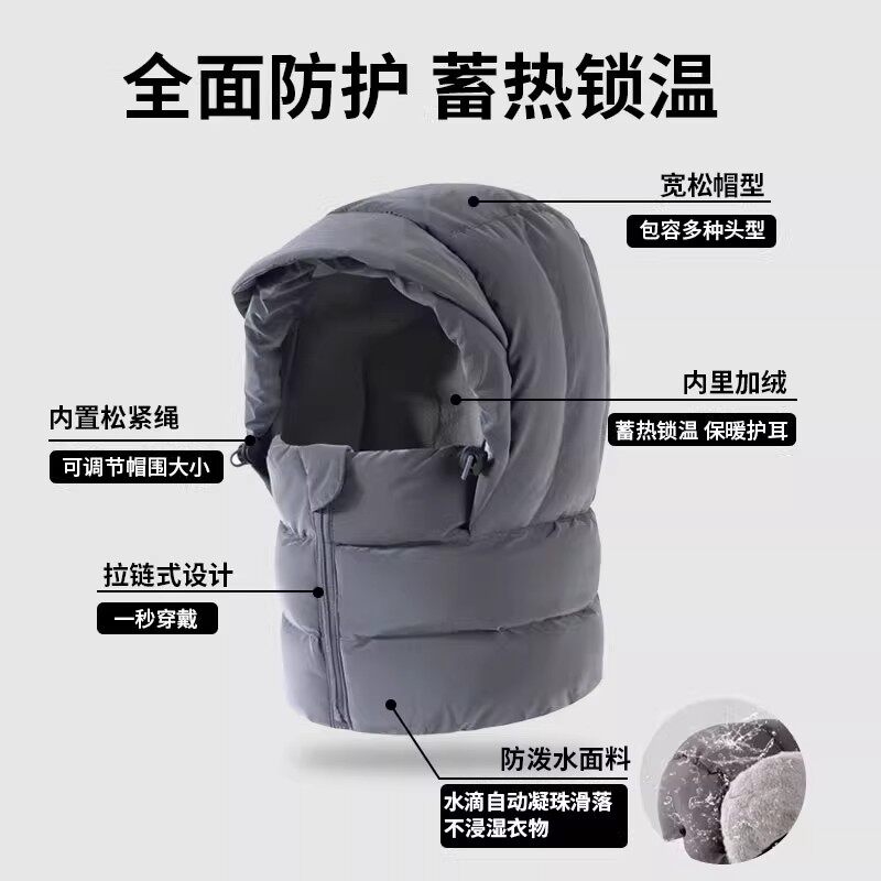 情侣滑雪雷锋帽羽绒帽子冬季骑行保暖围脖面罩一体男女防风防寒帽