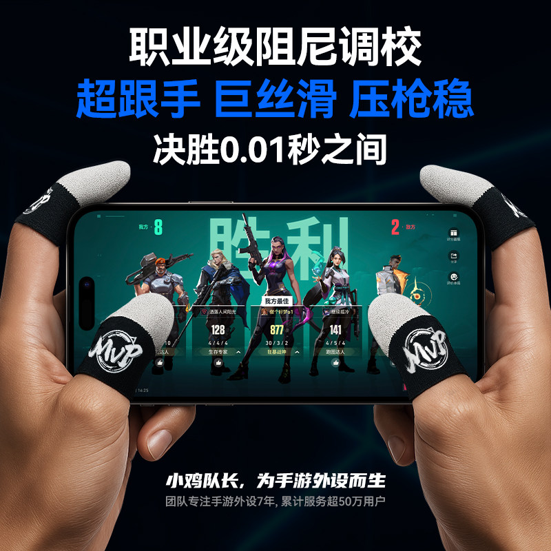 小鸡队长MVP手游指套电竞和平精英吃鸡神器防汗防滑王者荣耀三角洲行动无畏契约冰丝银布手机打游戏拇指套