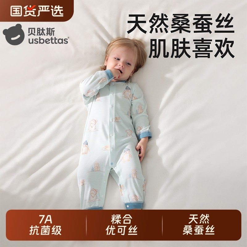 贝肽斯婴儿衣服春秋款连体衣桑蚕丝男女宝宝哈衣爬服睡衣春装贴身