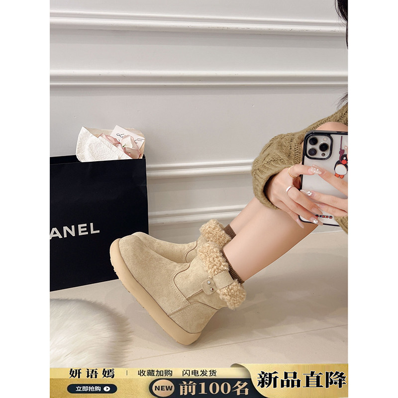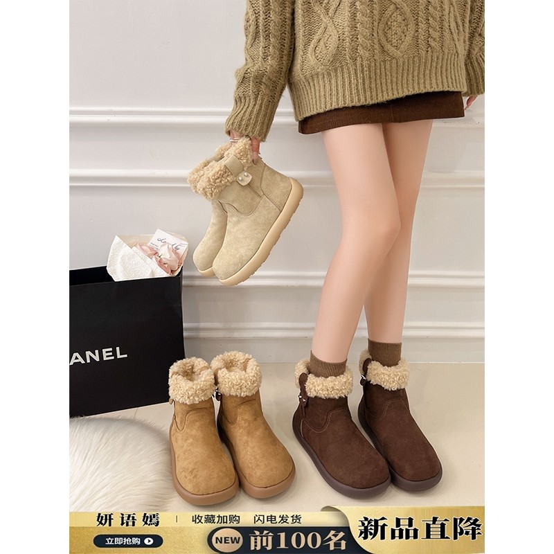 miu家~侧拉链雪地靴女冬季加绒加厚保暖棉靴厚底增高真皮短筒靴子